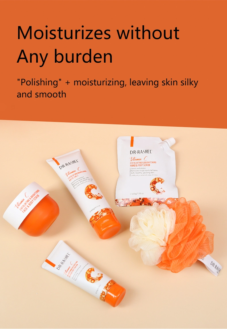 Dr. Rashel This scrub help buff skin and remove dead, dull, and flaky patches. The Vitamin C and niacinamide will help to brighten and even skin tone. Alpha Hydroxy Acid (AHA) is known to help to reveal a fresher-looking, tone and texture .Scrub away old skin to reveal healthy, vitamin rich skin!