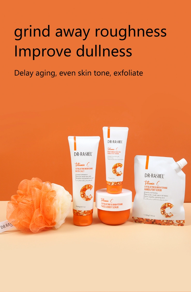 Dr. Rashel This scrub help buff skin and remove dead, dull, and flaky patches. The Vitamin C and niacinamide will help to brighten and even skin tone. Alpha Hydroxy Acid (AHA) is known to help to reveal a fresher-looking, tone and texture .Scrub away old skin to reveal healthy, vitamin rich skin!