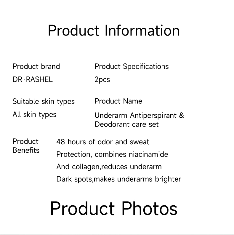 Dr. Rashel Vitamin C+turmeric Underarm Antiperspirant & Deodorant Care Set delivers long-lasting protection against wetness and body odour caused by perspiration. With a powerful, fast-drying formula , the roll-on deodorant gently glides onto skin for ultimate freshness, without leaving marks or stains. 48h reliable antiperspirant protection that cares for your skin.