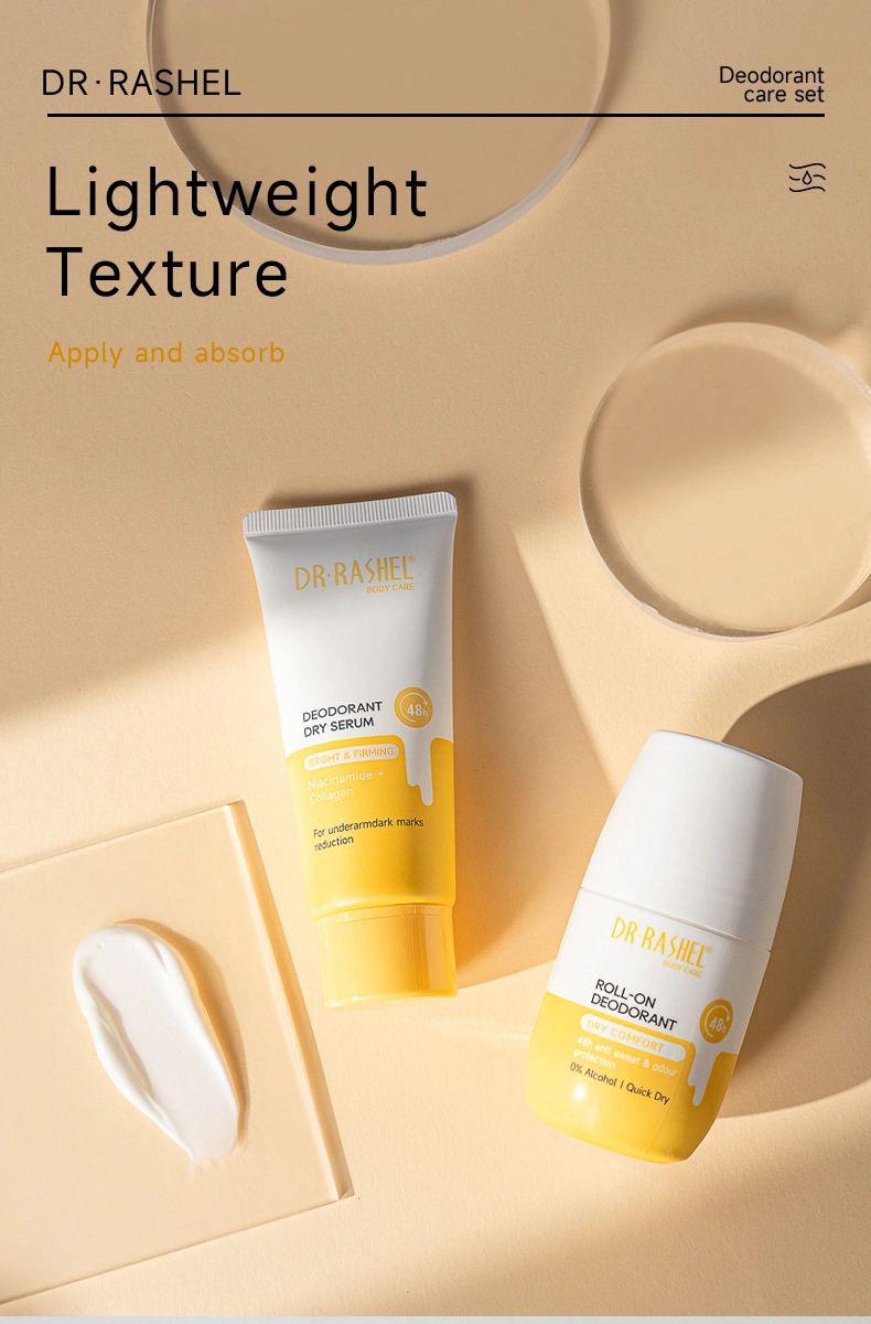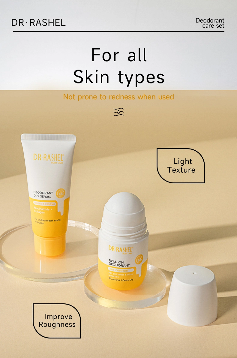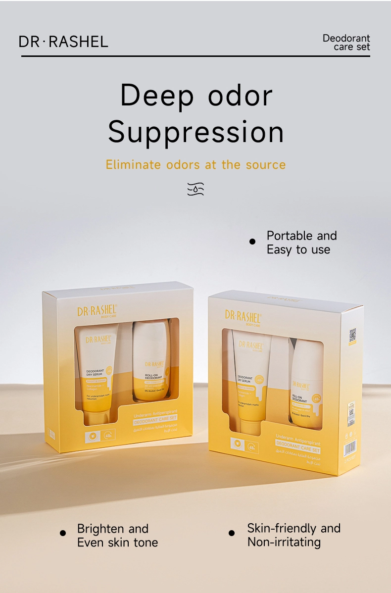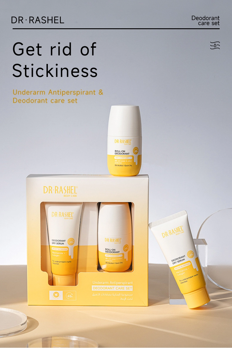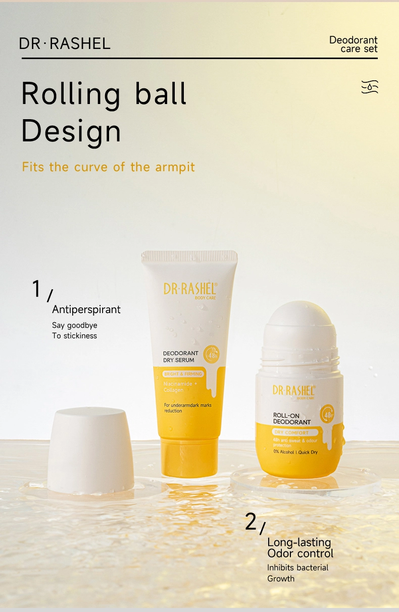 Dr. Rashel Vitamin C+turmeric Underarm Antiperspirant & Deodorant Care Set delivers long-lasting protection against wetness and body odour caused by perspiration. With a powerful, fast-drying formula , the roll-on deodorant gently glides onto skin for ultimate freshness, without leaving marks or stains. 48h reliable antiperspirant protection that cares for your skin.