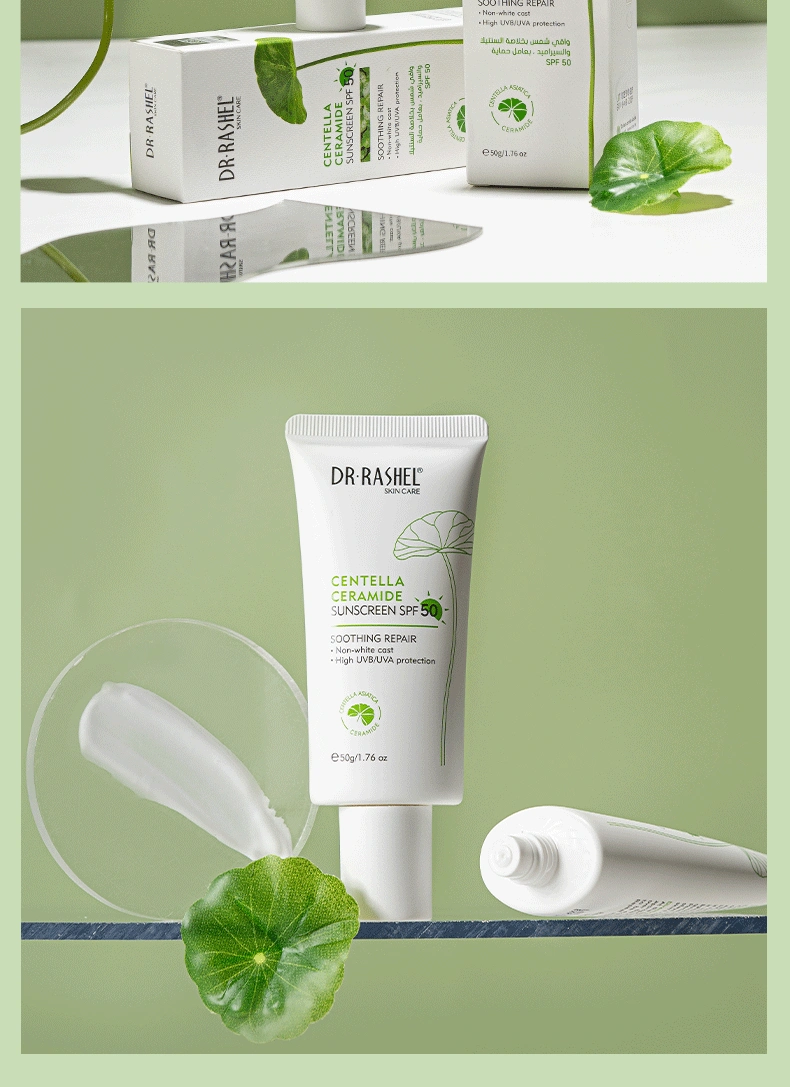 Dr. Rashel Centella & Ceramide Soothing & Repair Sunscreen SPF50 offers high broad-spectrum protection against harmful UVA and UVB rays. Infused with centella and ceramide, it helps soothe and repair skin, making it ideal for sensitive skin types. This lightweight, non-greasy formula absorbs quickly without leaving a white cast. Perfect for daily use, it ensures skin stays hydrated while enhance your skin’s radiance and overall vitality.