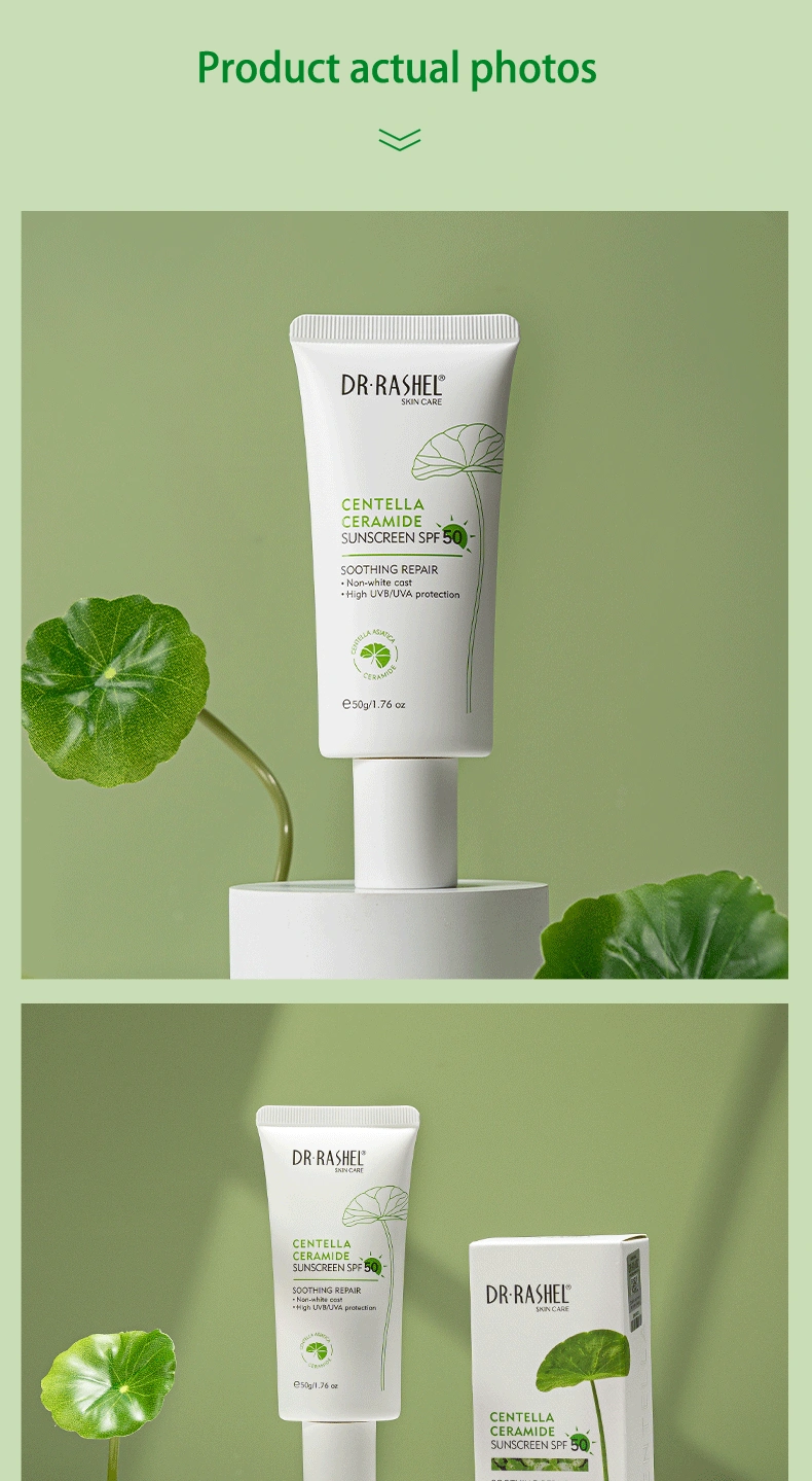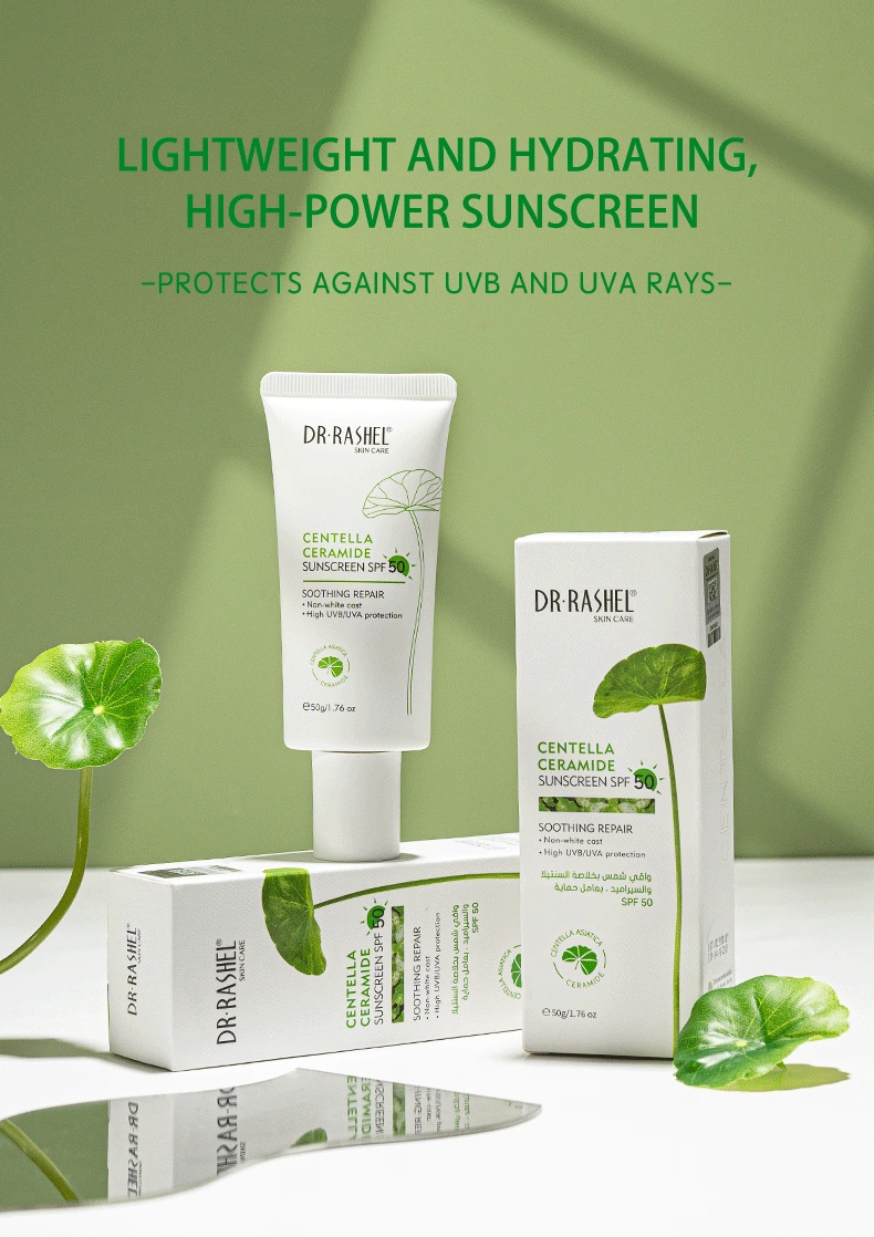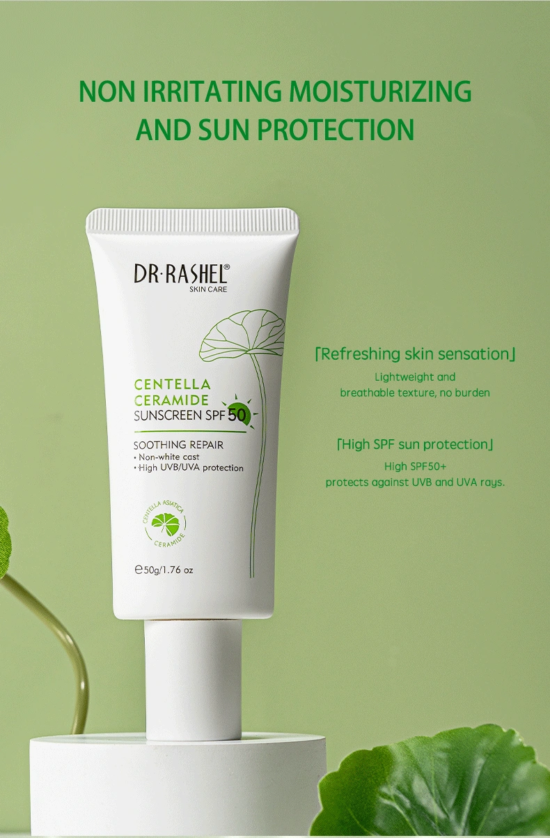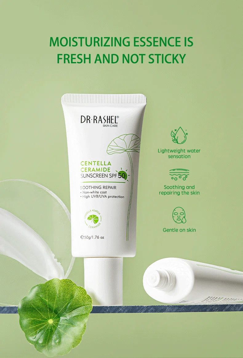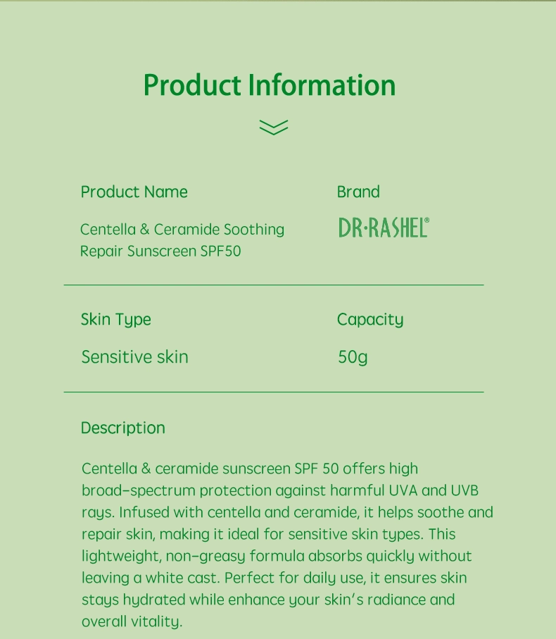 Dr. Rashel Centella & Ceramide Soothing & Repair Sunscreen SPF50 offers high broad-spectrum protection against harmful UVA and UVB rays. Infused with centella and ceramide, it helps soothe and repair skin, making it ideal for sensitive skin types. This lightweight, non-greasy formula absorbs quickly without leaving a white cast. Perfect for daily use, it ensures skin stays hydrated while enhance your skin’s radiance and overall vitality.