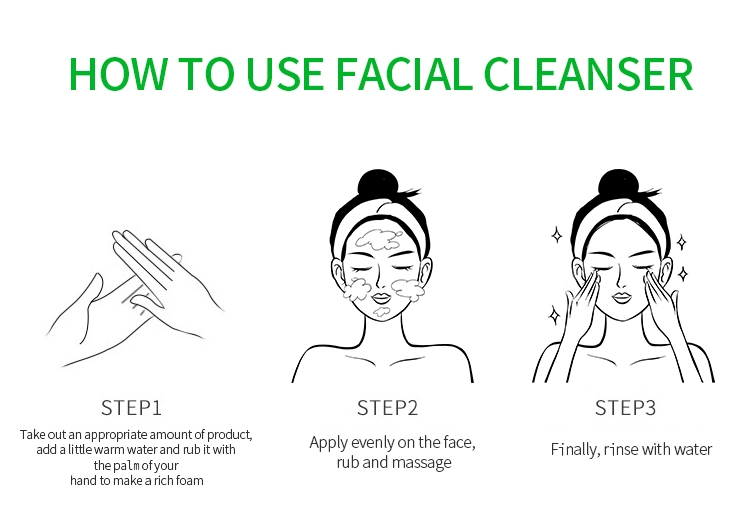 Use twice a day,squeeze small amount into hands and work into rich lather. Massage onto wet face,avoid contact with eyes,rinse thoroughly with water.