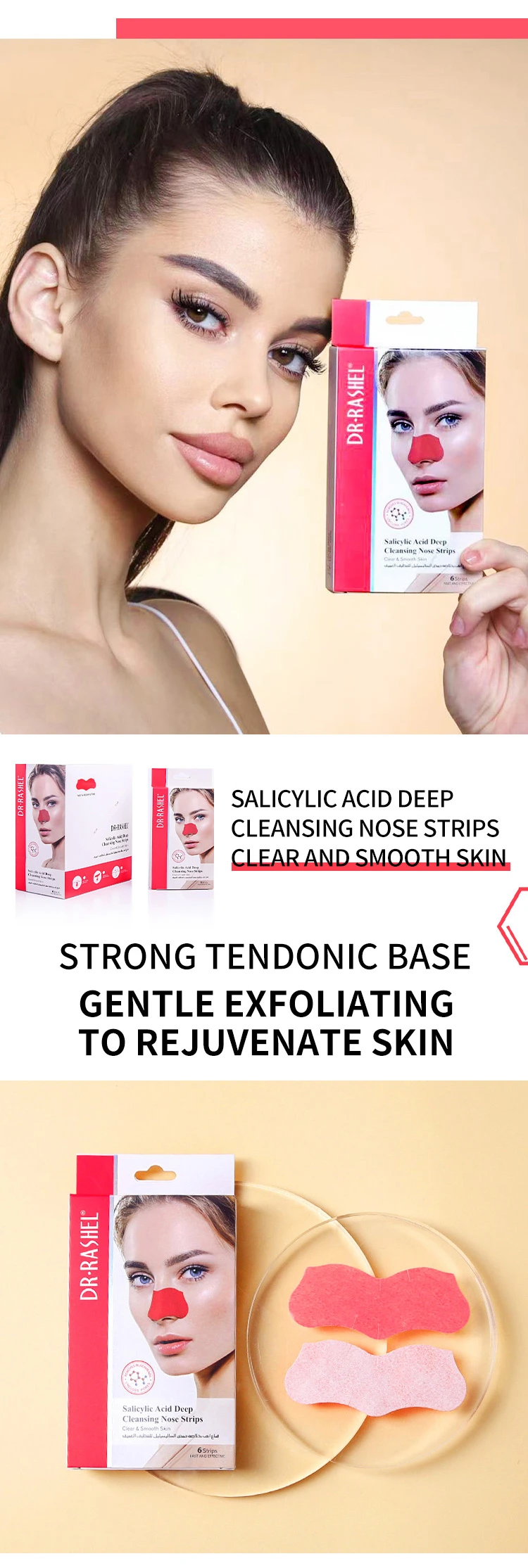 Dr. Rashel Deep cleansing nose strips target blackheads and unclog pores for healthy looking skin. Peel off type nose strip with excellent absorption capacity. Natural ingredients – tea tree extract, helps to draw out impurities and unclog pores of dirt and oil leaving your skin smooth and clean.