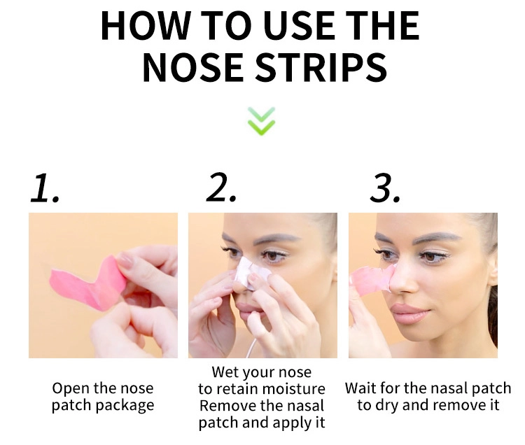 Wash your face before you apply your pore strip. Cleanse your face thoroughly with a desired cleanser. Pat your face dry.Open packet and peel strip from plastic liner. Apply the strip and thoroughly wet nose with water or the strip will not stick and may not be effective. Let the strip dry for 5-10 minutes. Slowly and carefully, peel the strip off, starting at edges and pulling towards the center of the nose. Rinse off the residue with water. Follow with moisturizer.