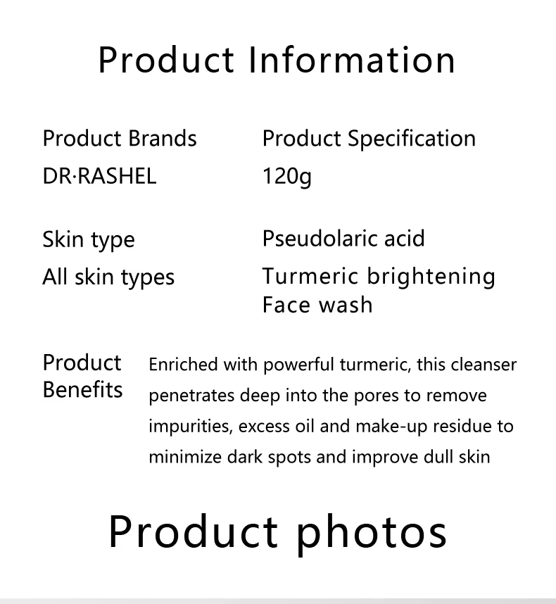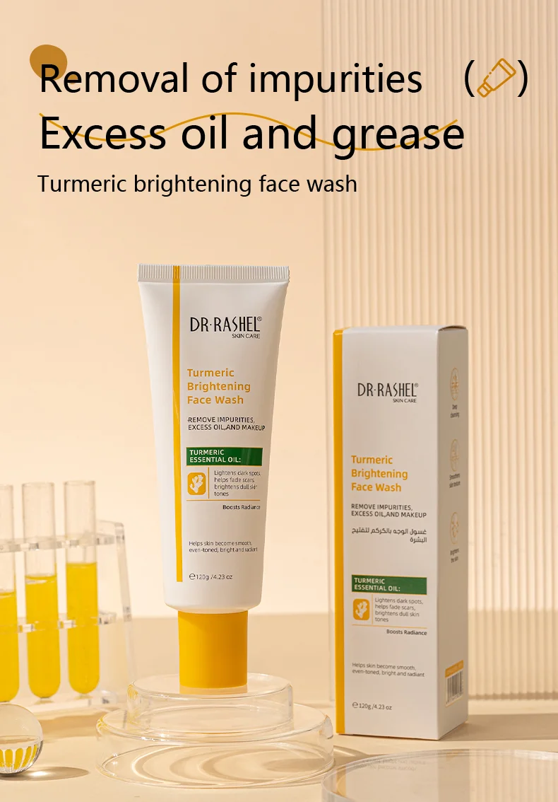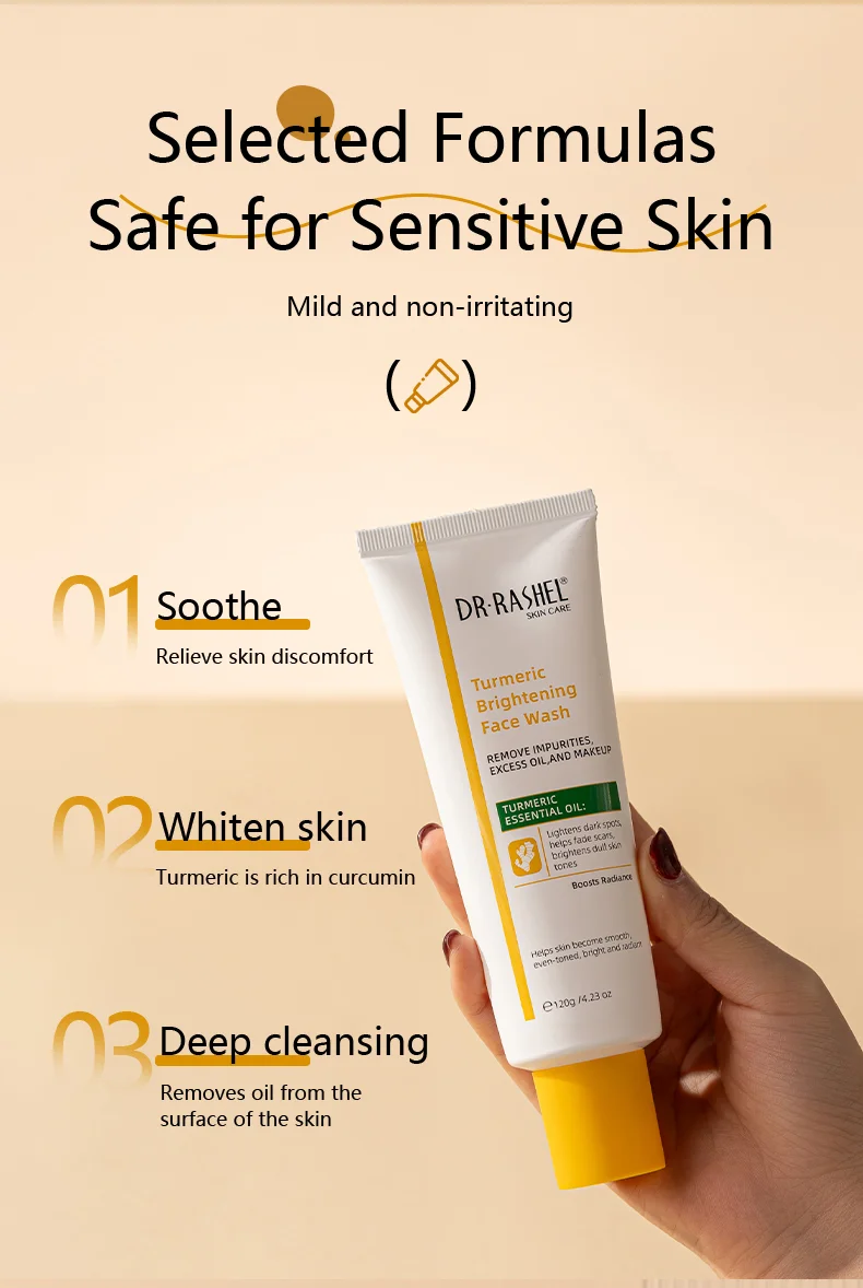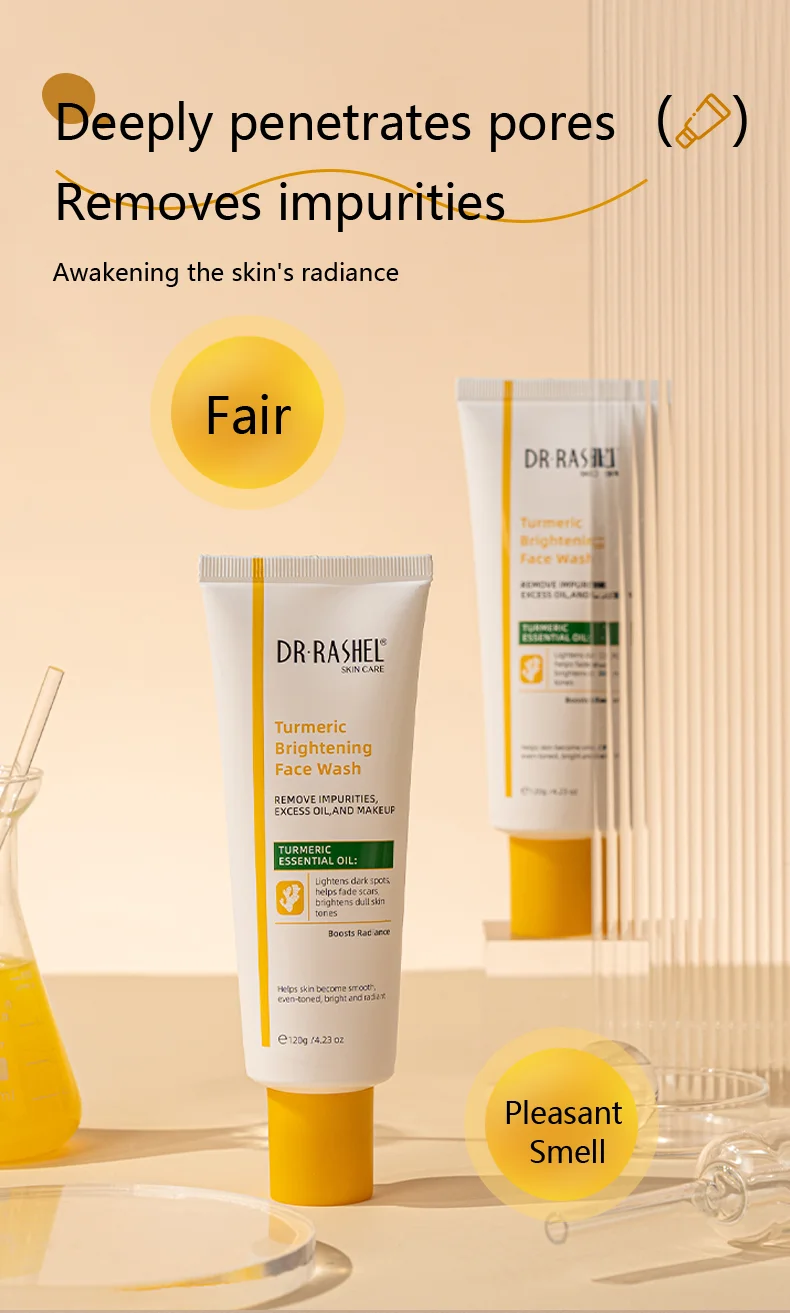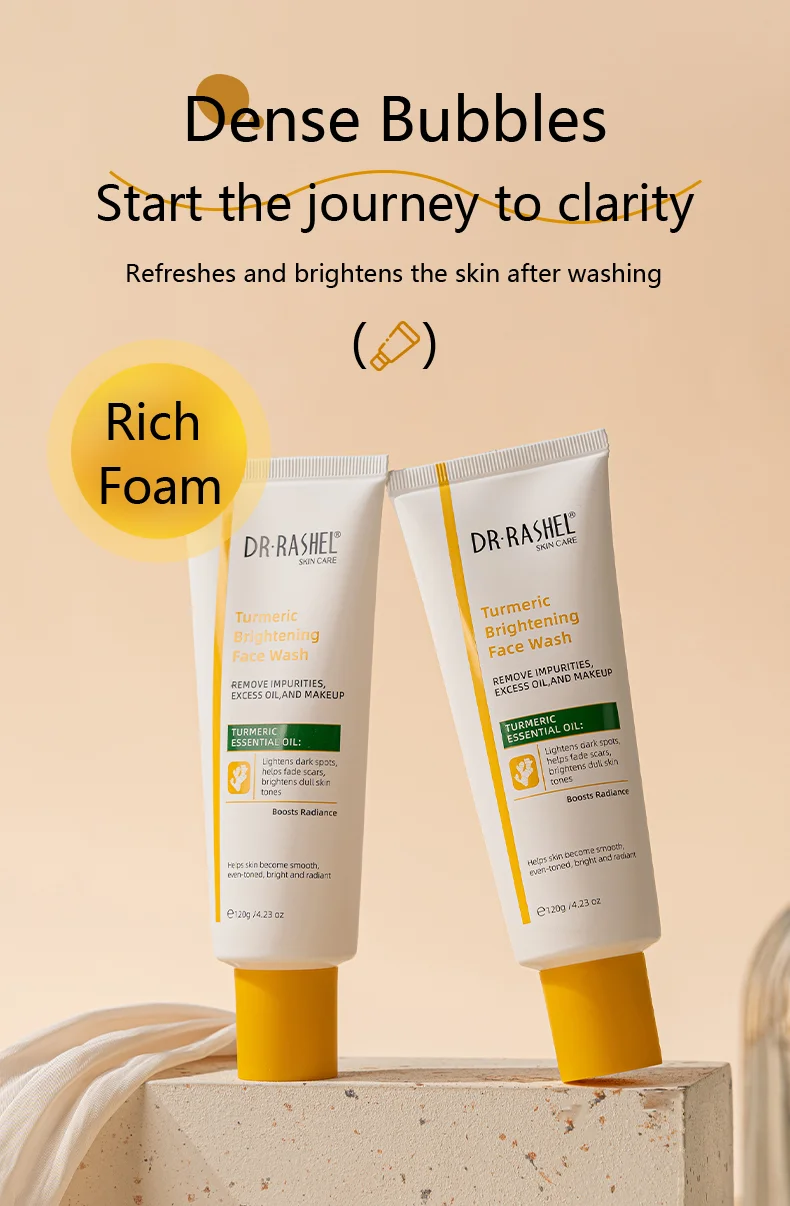 Enriched with the powerful turmeric,this facial cleanser penetrates deep into the pores to remove impurities,excess oil,and makeup residue,effectively lightens dark spots and improves dull skin,promoting a brighter,more even skin tone,leaving your skin feeling fresh,clean,and revitalized.