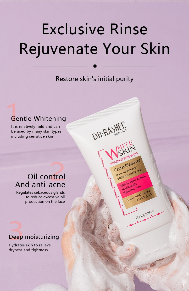 Dr. Rashel Whitening Fade Spots facial cleanser Infused with niacinamide to prevent clogged pores, balance sebum and help improve the appearance of redness and blemishes. The whitening facial cleanser is your skin’s hero to remove the day’s accumulation of oil, dirt, and impurities. It controls sebum production along with helping in reducing acne marks and open pores. Bid goodbye to your skin problems, for a healthier-looking complexion.