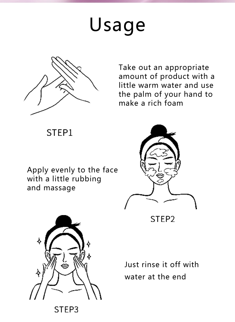 Use twice a day,squeeze small amount into hands and work into rich lather. Massage onto wet face,avoid contact with eyes ,rinse thoroughly with water.