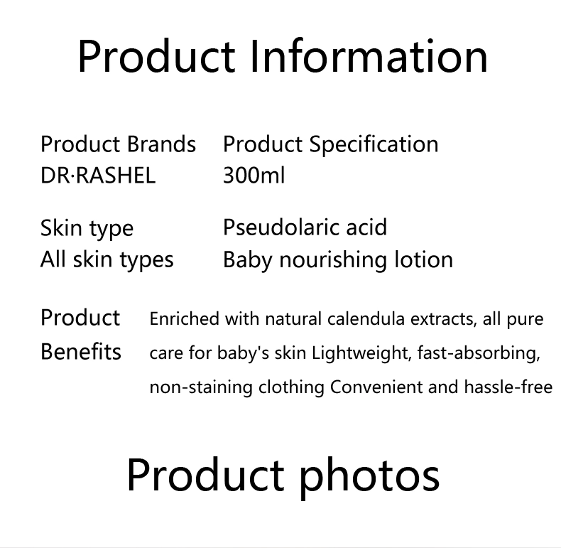Dr. Rashel Baby nourishing lotion-300ml is designed to soothe and nourish, while moisturizing and protecting your baby’s skin from dryness. Formulated with organic calendula to soothe plus sweet almond oil and Vitamin E to soften and smooth skin. Protects from redness & rashes, arising out of dry skin conditions,nourishes from inside giving soft and smooth skin
