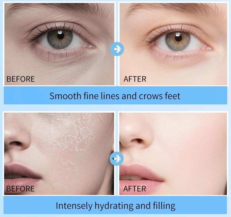 La textura de la piel simulada al tacto cercano proporciona una sensación de peso a la piel. Enriquecido con ácido hialurónico altamente hidratante, penetra rápidamente la piel’ s superficie y forma una red de retención de agua invisible, capturando firmemente la piel’ s humedad interna. Proporciona una hidratación duradera y elimina la rugosidad y la deshidratación, complementada por un cuidado péptido dirigido, reduciendo efectivamente las arrugas y las líneas finas alrededor de los ojos. Fortalece la piel’ Barrera de retención de agua, asegurando que la piel facial en general se mantenga suave y suave, lo que resulta en una piel nutrida y radiante.