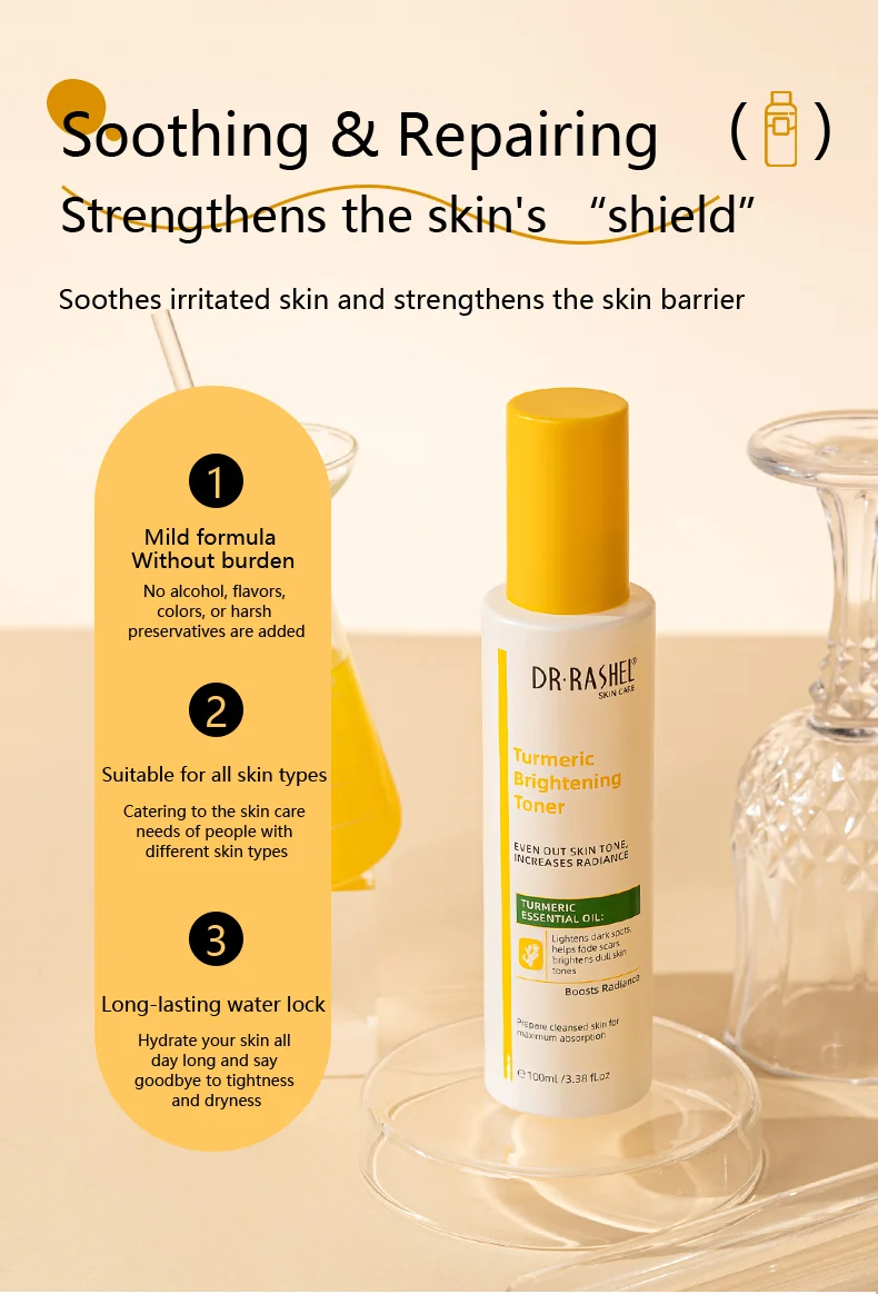Soothe and hydrate your skin with our nourishing toner.This brightening toner gently hydrate, balance, and refresh the skin. It contains natural turmeric extract that reduces