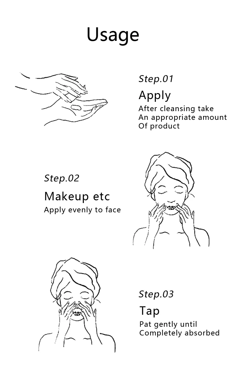 Cómo utilizar: Lavar la cara, tomar la cantidad adecuada en su mano y con una solapa suave hasta absorber perfectamente. O remoje una almohadilla de algodón con tóner y limpie suavemente la cara, los ojos y el cuello para limpiar y tonificar.