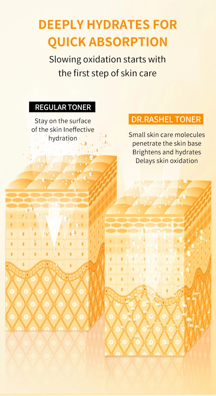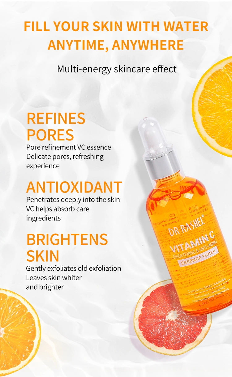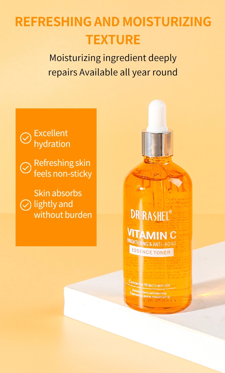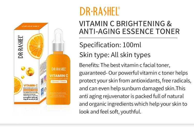 Dr. Rashel Vitamin c brightening & anti-aging essence toner guaranteed- Our powerful vitamin c toner helps protect your skin from antioxidants, free radicals, and can even help sunburn damaged skin. This anti aging rejuvenator is packed full of natural and organic ingredients which help your skin to look and feel soft, youthful, and vibrant the first time you use it