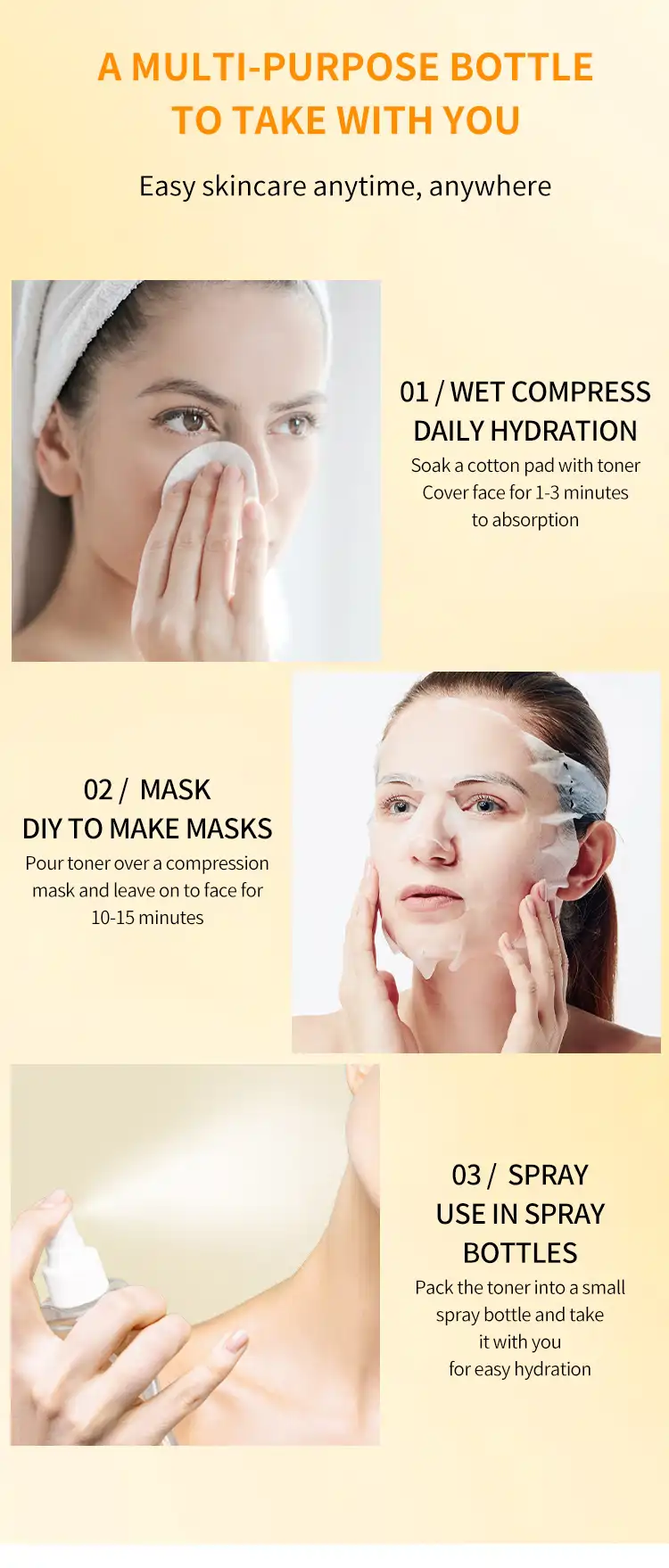 Q1: What does this Vitamin c brightening & anti-aging essence toner do?