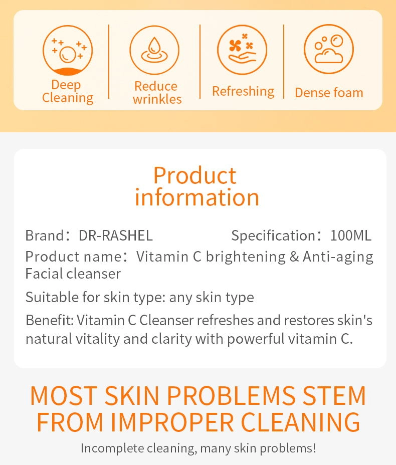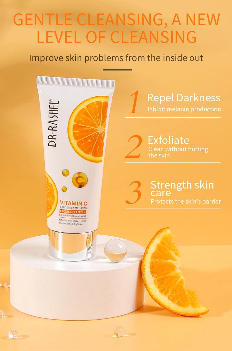 Dr. Rashel vitamin c facial cleanser refreshes and restores skins natural vibrance and clarity with powerful Vitamin C. A boost of antioxidants repair and protect from environmental damage and sun exposure. Contains vitamin c and hyaluronic acid ingredients, helps fade sun spots and discoloration, refines skin texture and reduces wrinkle . Gently remove impurities to reveal a more youthful and whitening complexion.
