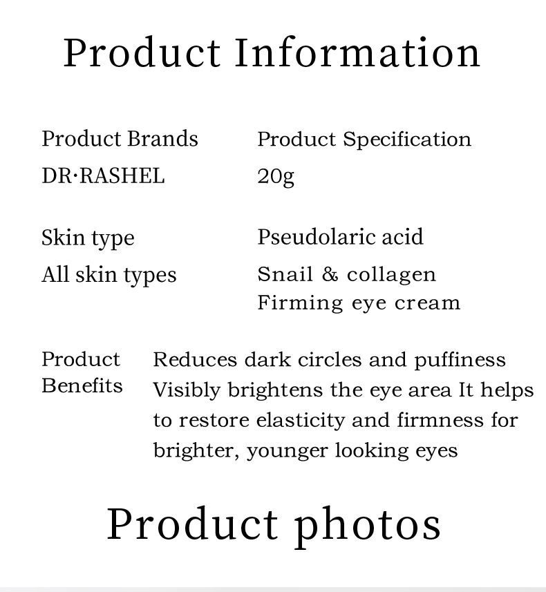 Q2: What benefits does this eye cream provide? A: This eye cream helps hydrate and nourish the delicate eye area, improve firmness and elasticity, and reduce the look of fine lines and dark circles over time.