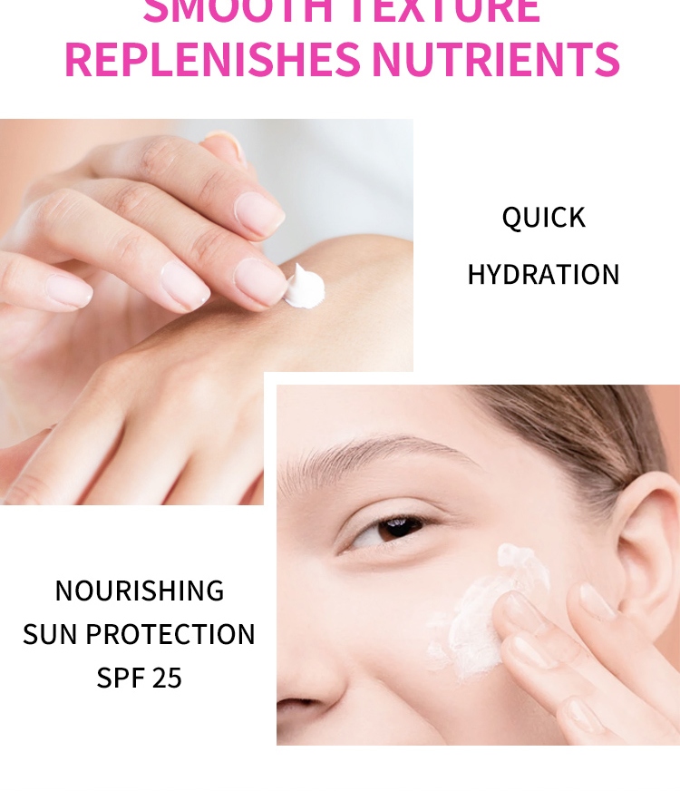 Improves dull skin,reduces pigmentation,24h moisturizing,even skin tone. It also has moisturizing, rejuvenating, firming and anti-wrinkle effects, making the skin more youthful and vibrant.