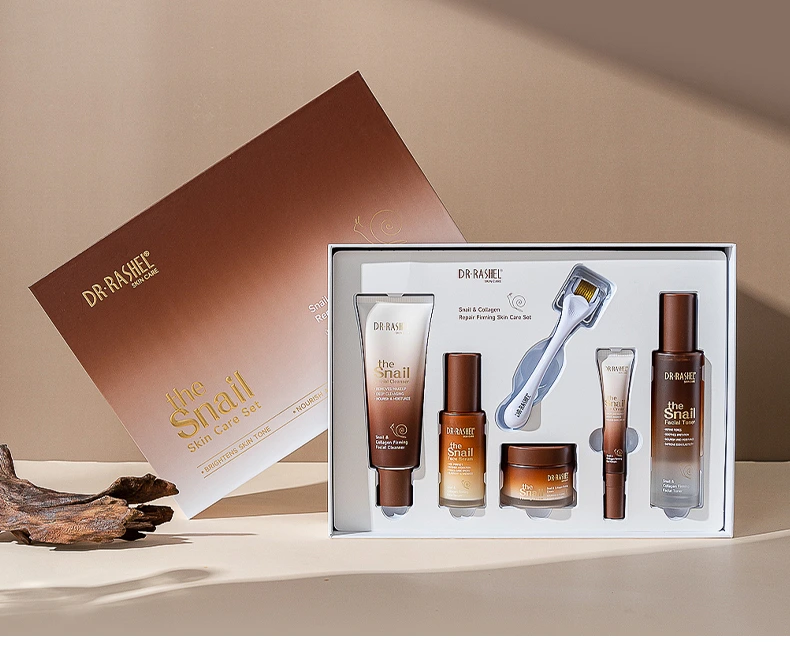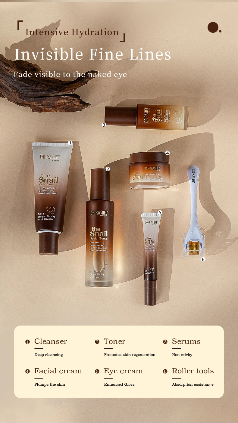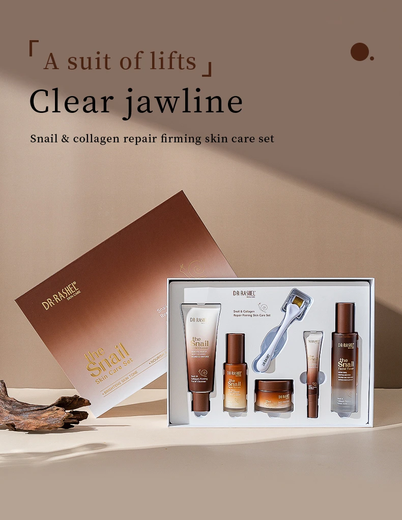 Snail & Collagen Repair Firming Skincare Set is a complete daily skincare solution designed to repair damaged skin, improve elasticity, and reduce signs of aging. Infused with snail secretion filtrate and collagen, this set deeply nourishes, hydrates, and revitalizes the skin, leaving it smooth, firm, radiant, and youthful-looking.