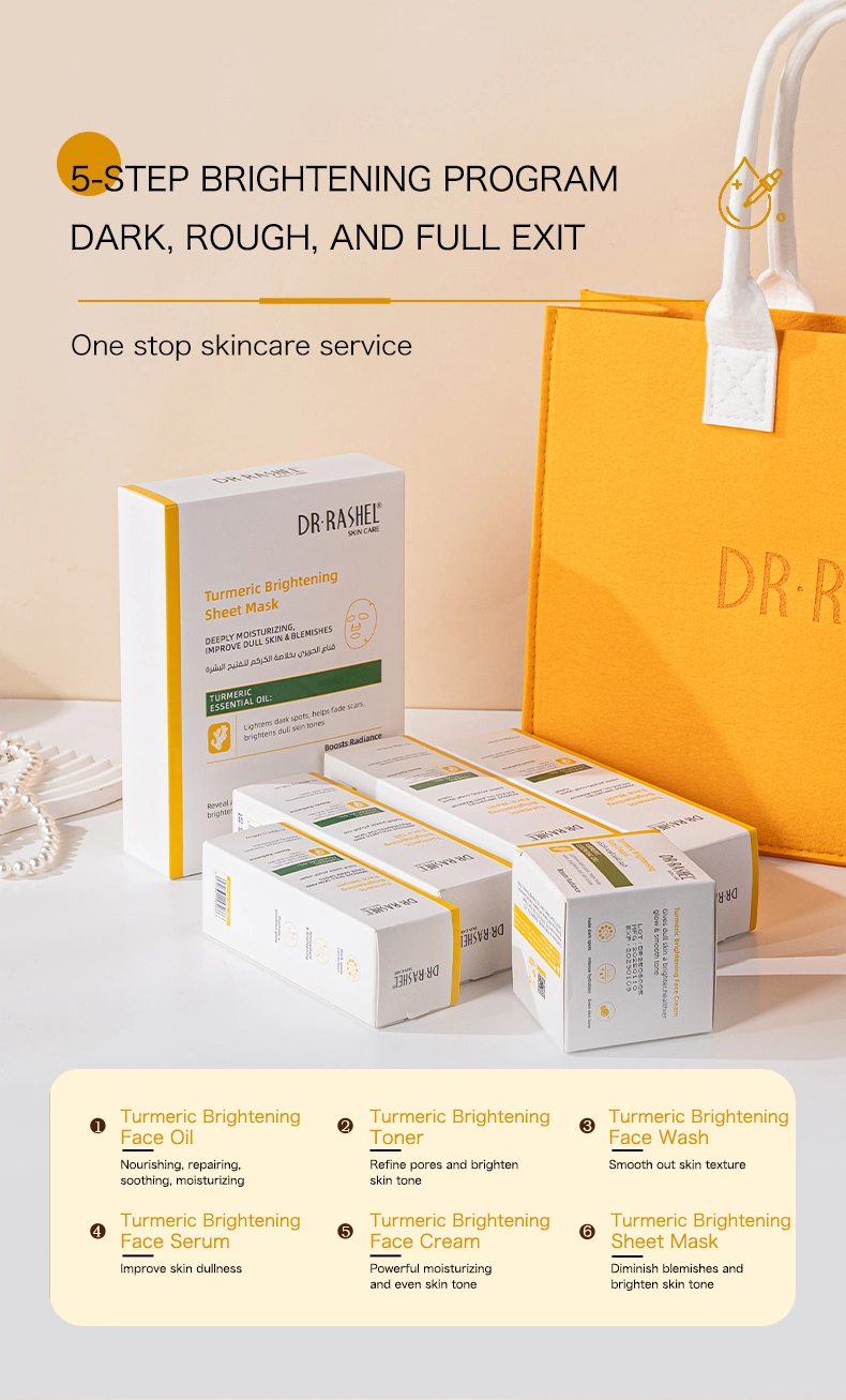 The Turmeric Glow Brightening Skin Care Set is a complete 6-piece skincare routine designed to reveal luminous, radiant skin using the natural brightening and anti-inflammatory benefits of turmeric. Each product in the set—ranging from cleanser and toner to serum, face oil, cream and derma roller—works together to cleanse, hydrate and revive dull, uneven skin for a healthy golden glow. Regular use helps balance tone, fade dark spots and restore youthful vitality.
