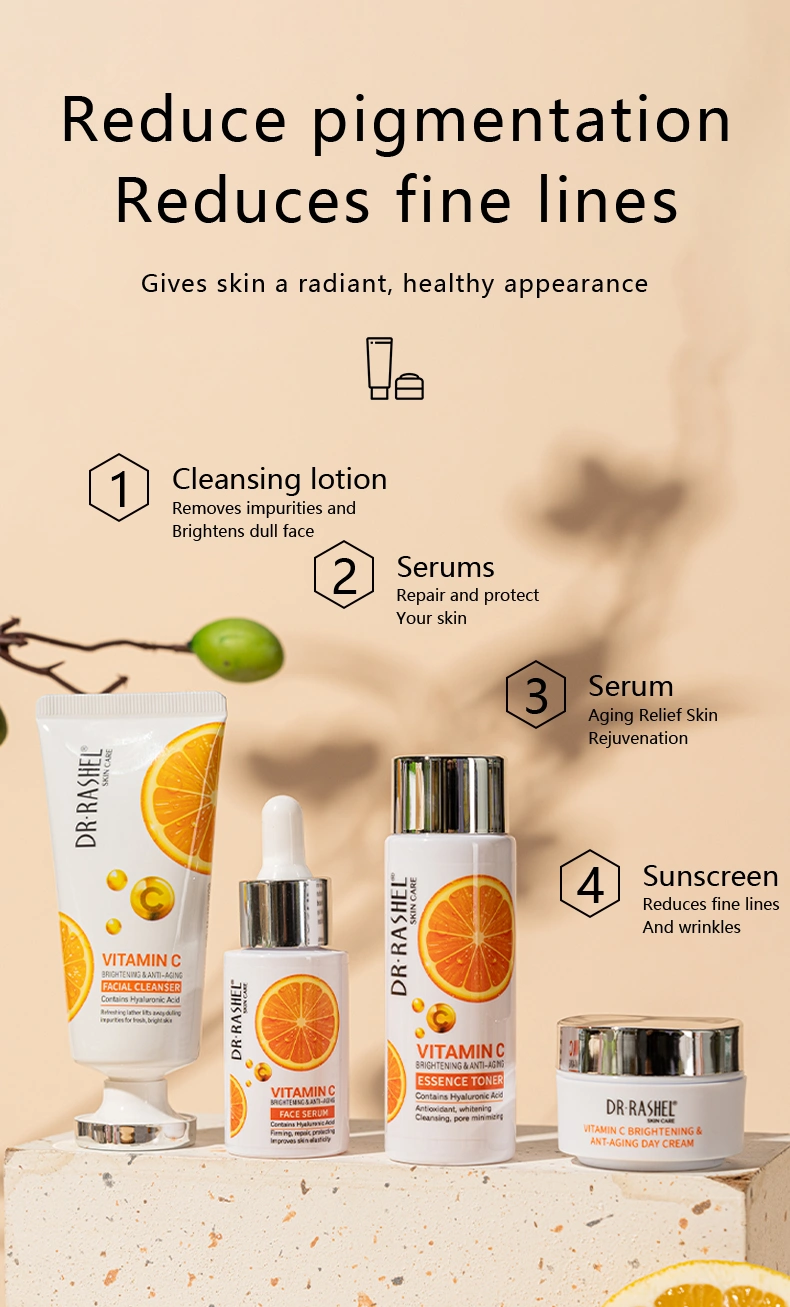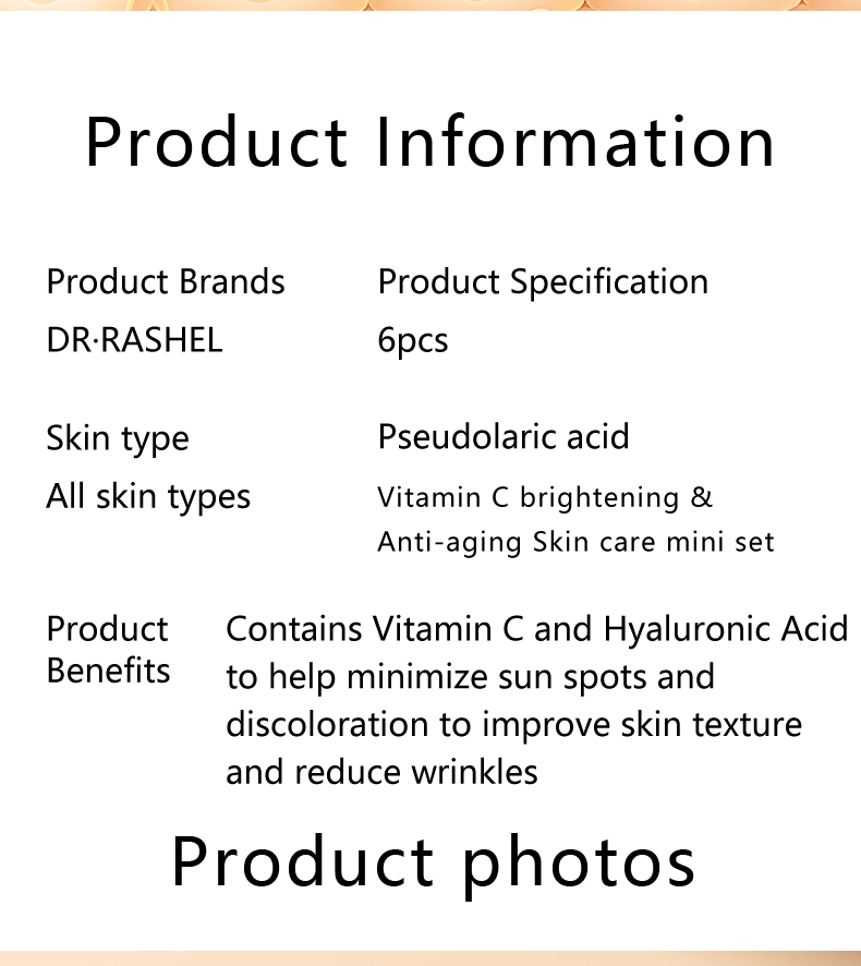 Dr. Rashel Vitamin C brightening & Anti-aging skin care mini set. Contains vitamin c and hyaluronic acid ingredients, helps fade sun spots and discoloration, refines skin texture and reduces wrinkle . Gently remove impurities to reveal a more youthful and whitening complexion.