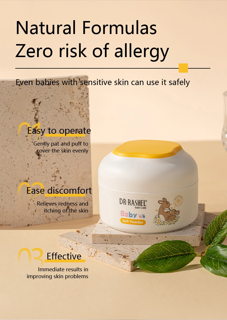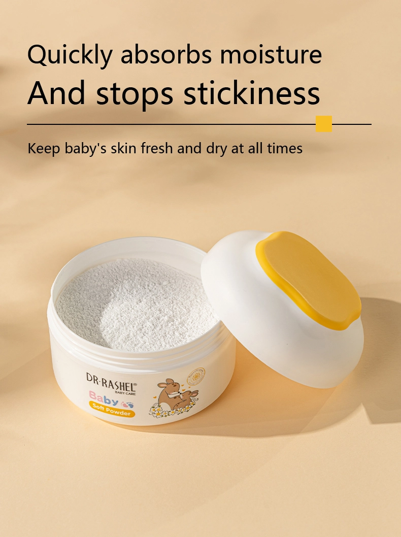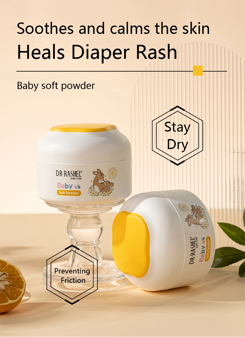 Dr. Rashel Soothe your baby’s senses after bath time or while diapering with baby powder. Our baby powder helps soothe, heal and prevent nappy rash. The soft, fine powder absorbs moisture quickly and is easy to apply to all those tricky baby skin folds. An effective barrier against wetness and irritation, as well as helping prevent chafing.