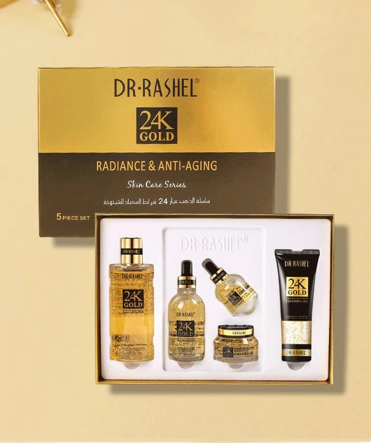 Q1: What does this 24K Gold radiance & anti-aging skin care set do?