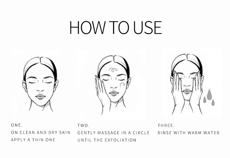 Apply a thin layer on clean, dry skin. Gently massage in a circular motion until you feel its exfoliating action, then rinse well with water.