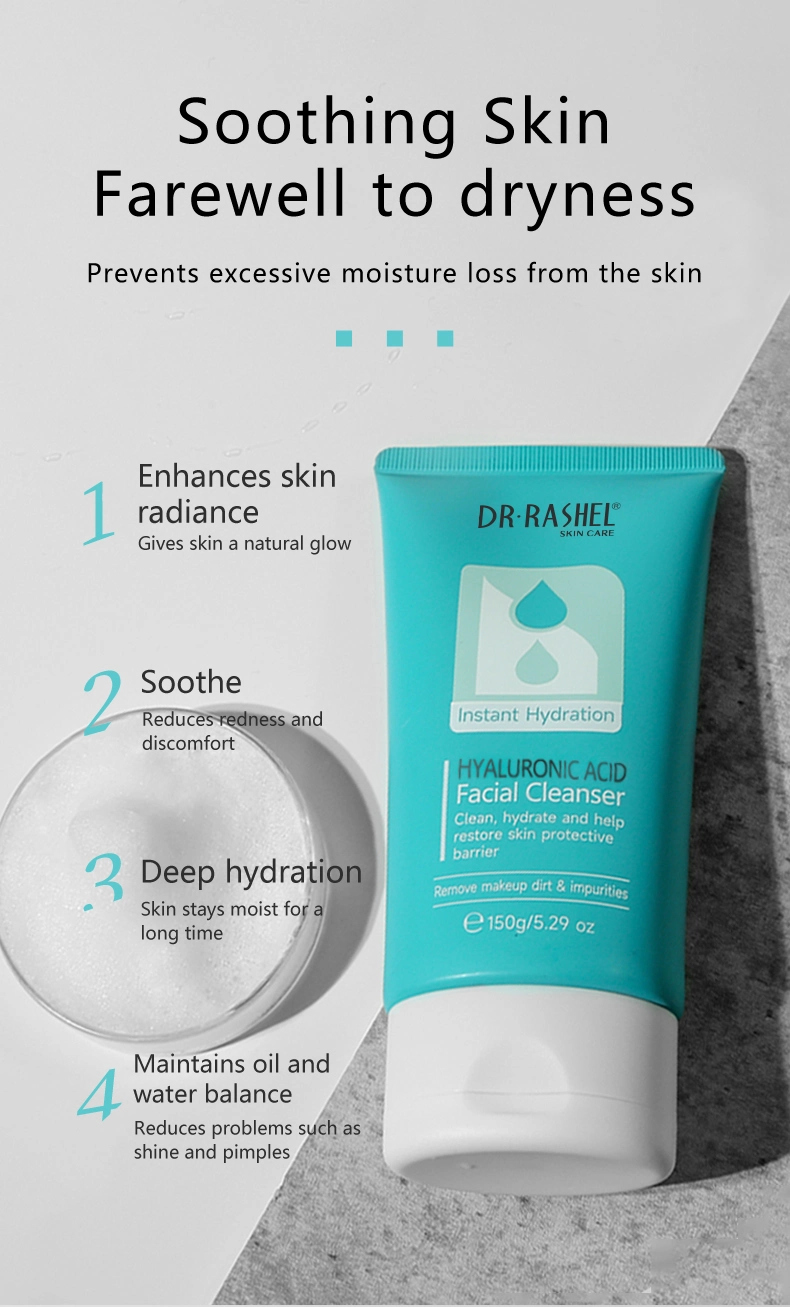 Q1: What does this Hyaluronic acid instant hydration facial cleanser do?
