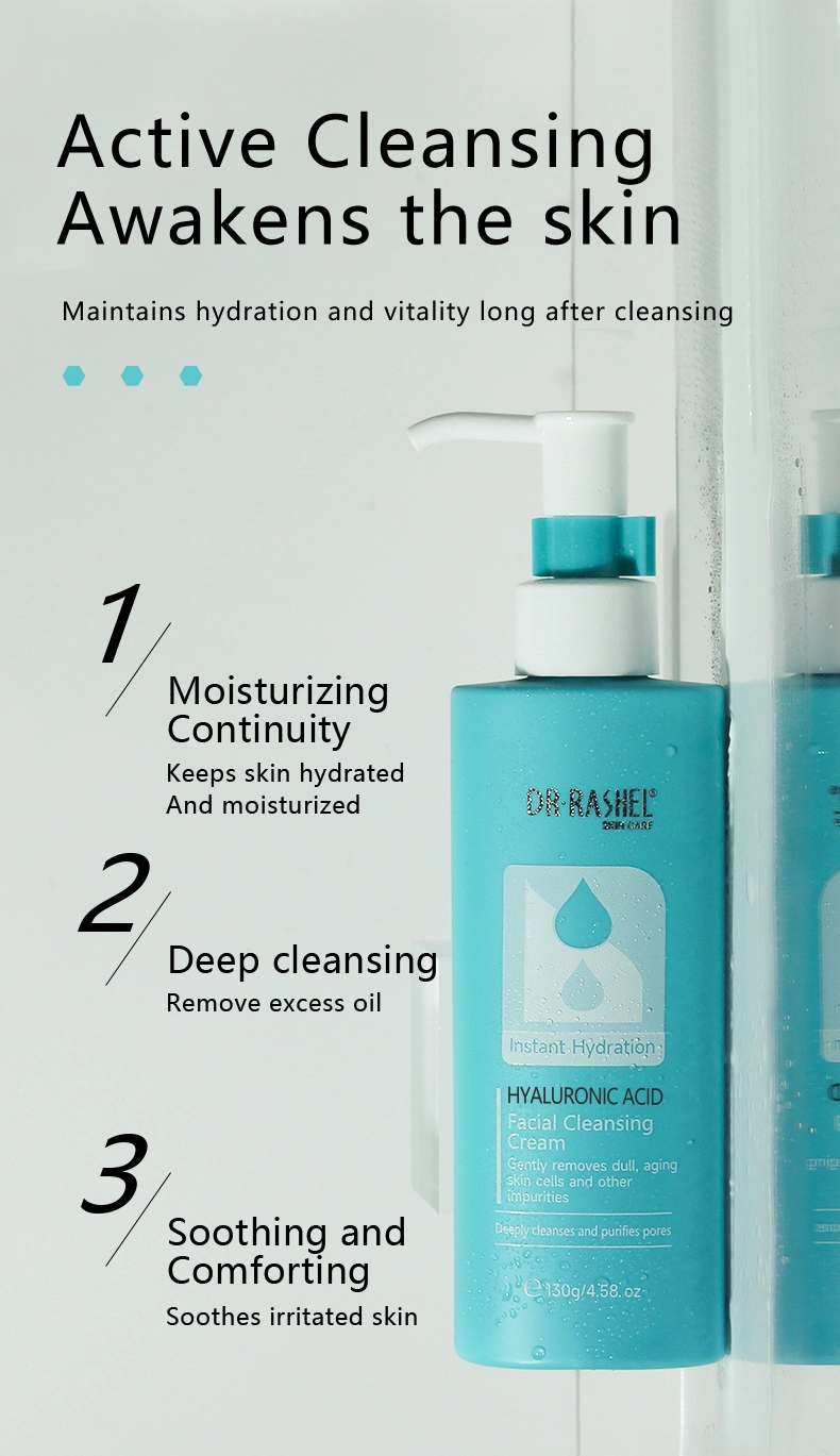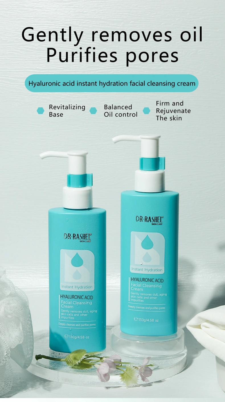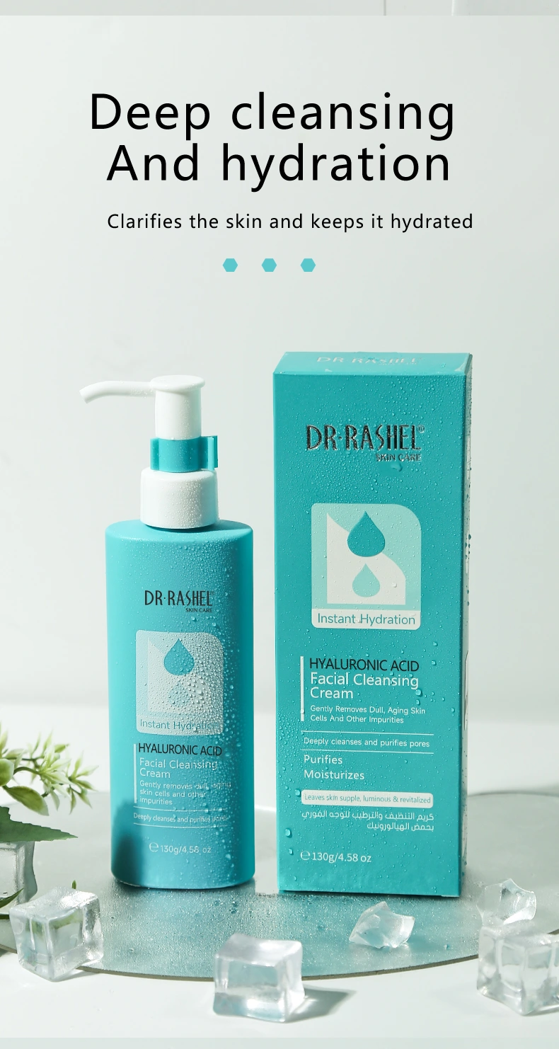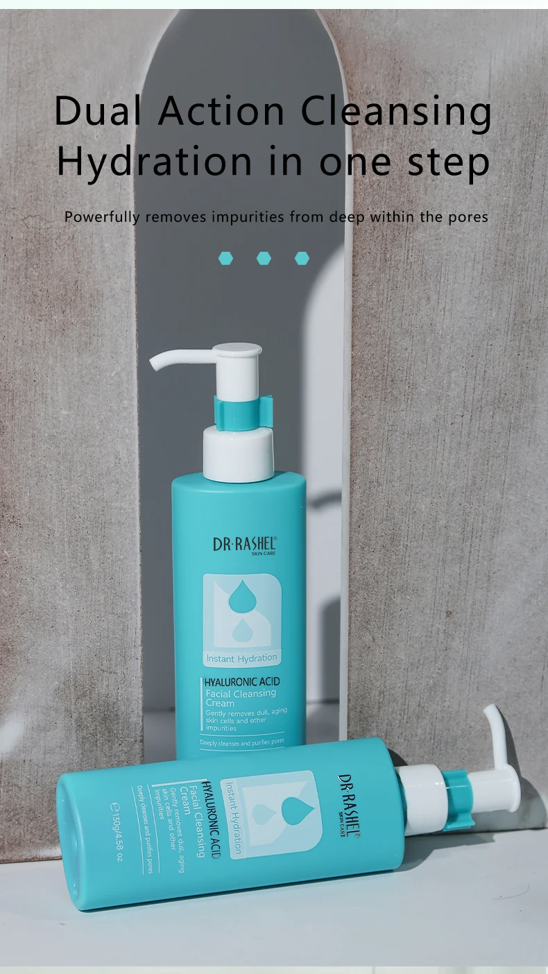 Dr. Rashel Hyaluronic acid instant hydration facial cleansing cream is an advanced anti-aging, pore-reducing cleanser specially formulated to gently remove excess oil and makeup without disturbing skin’s protective barrier.Replenishing hyaluronic acid and ceramides draw moisture into skin for a soft, hydrated complexion that’s perfectly prepped for the rest of your routine.