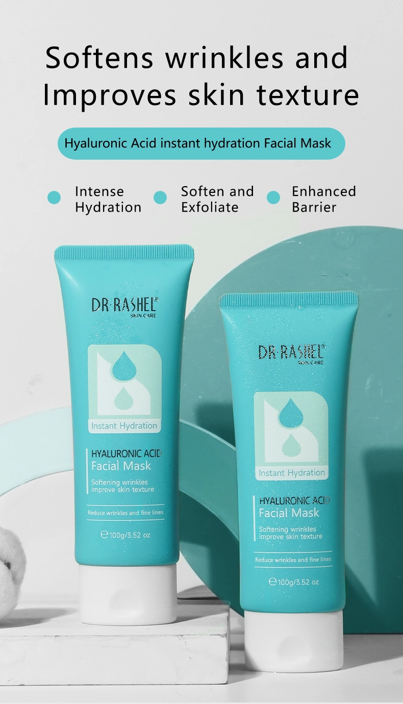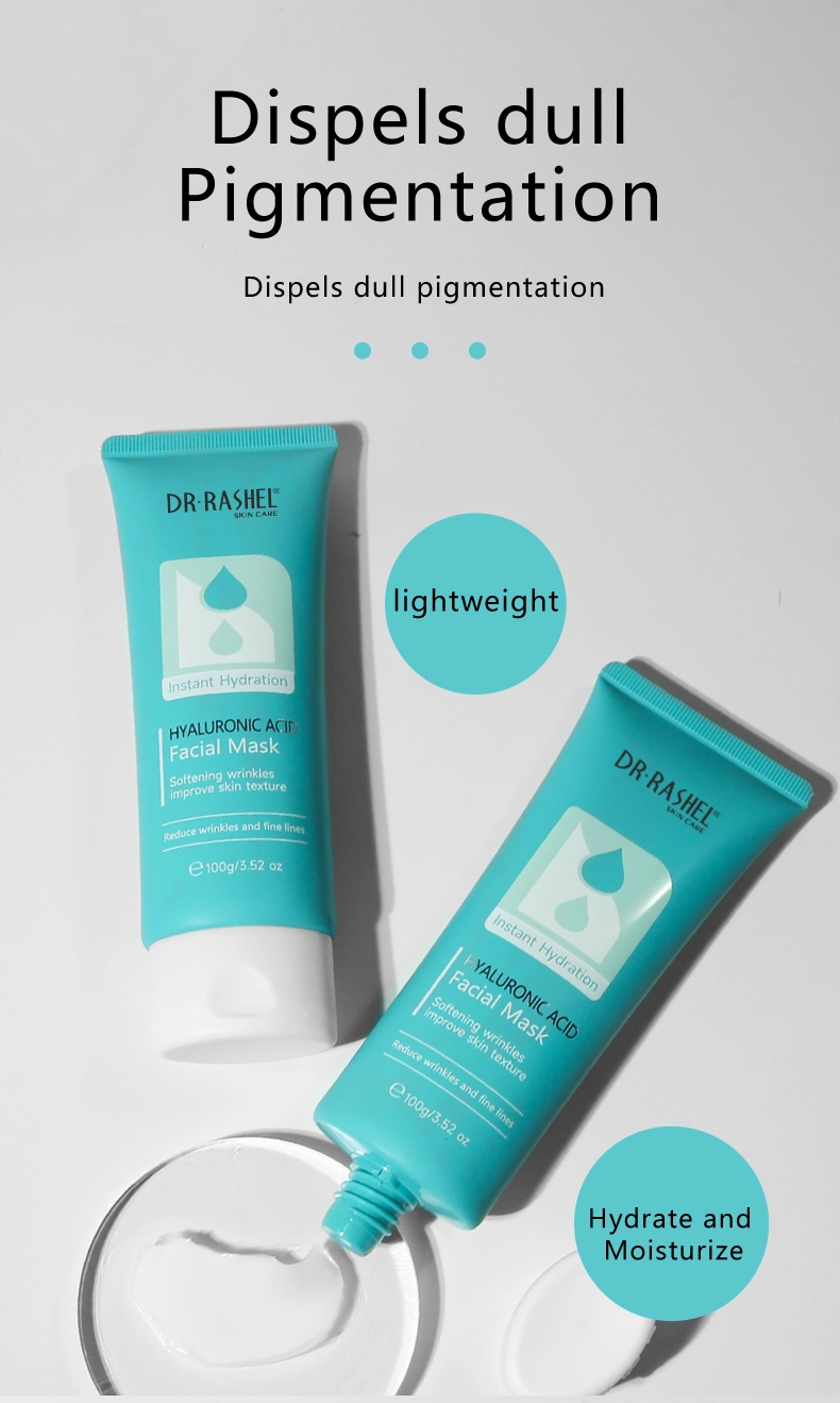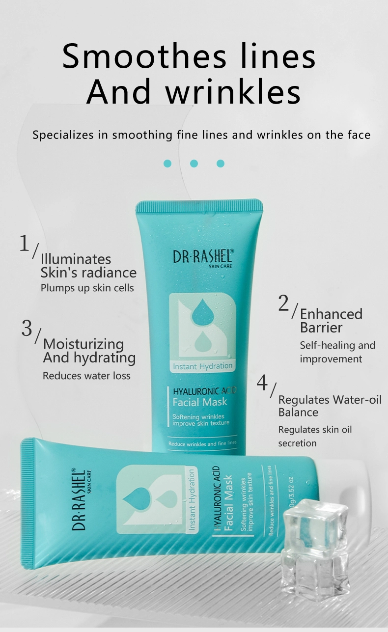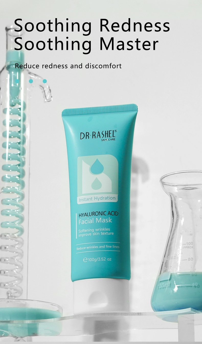 Dr. Rashel Hyaluronic acid instant hydration facial mask Pamper your skin with this hydrating, smoothing hyaluronic acid based mask for brighter, refined, younger-looking skin. Our hyaluronic acid facial mask is specially formulated for your face, which can moisturize, smooth and regulate uneven skin. Its formula is gentle and non irritating, which can reduce wrinkles and fine lines. The hydration station for seriously thirsty skin.