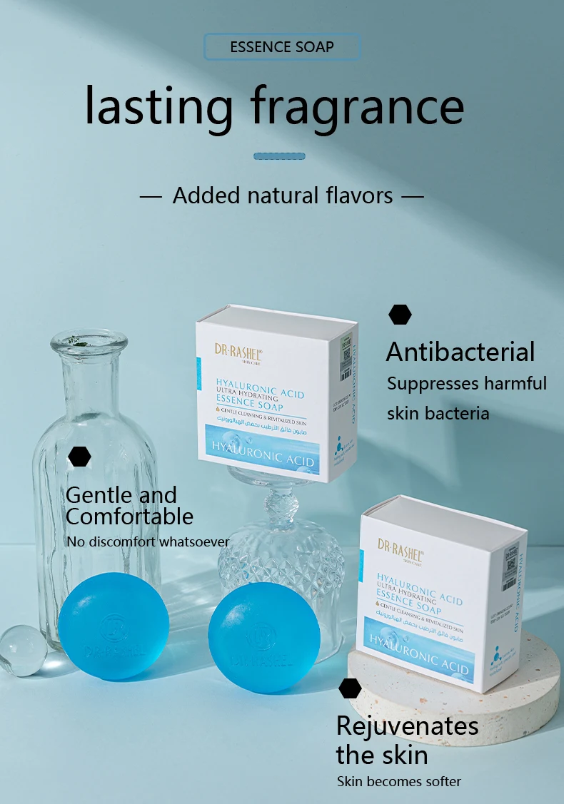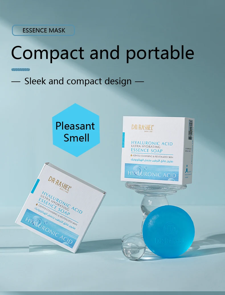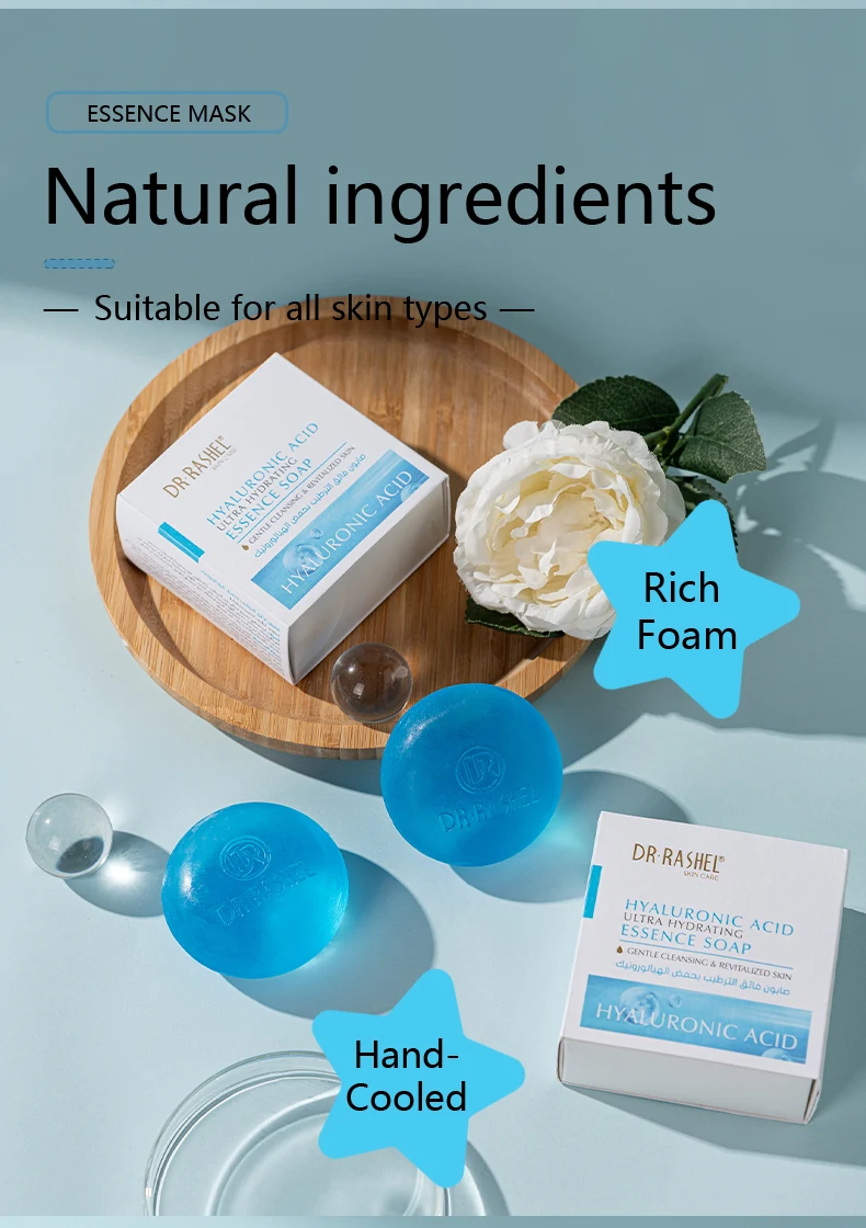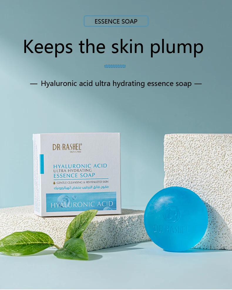 Dr. Rashel Hyaluronic Acid Ultra Hydrating Essence soap Experience the perfect blend of hydration and cleansing with our hyaluronic acid hydrating soap. Hyaluronic acid helps reduce the appearance of fine lines, promoting a youthful complexion. Formulated to gently cleanse while deeply moisturizing, ensuring your skin feels plump and rejuvenated after every wash.