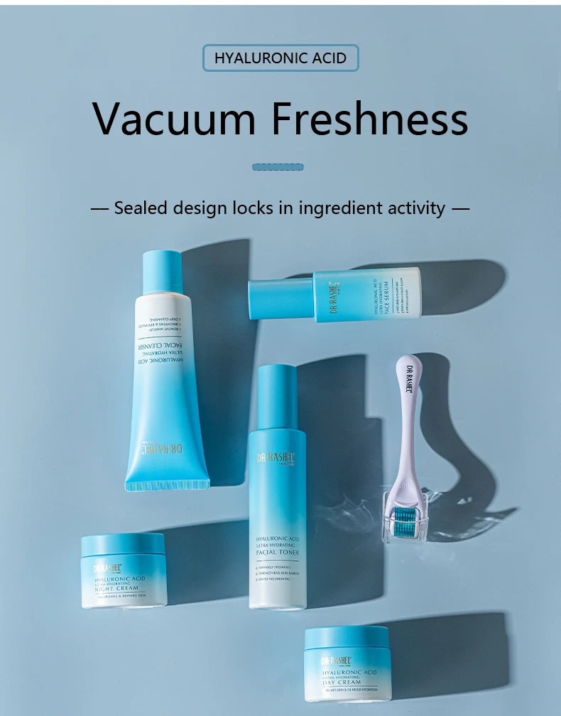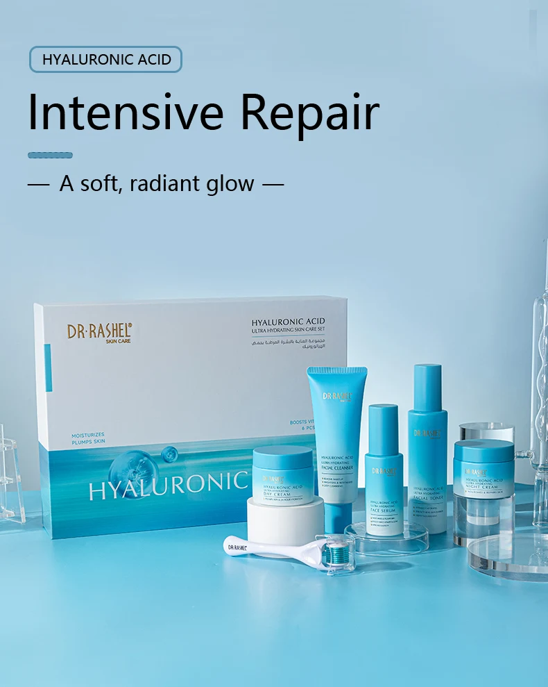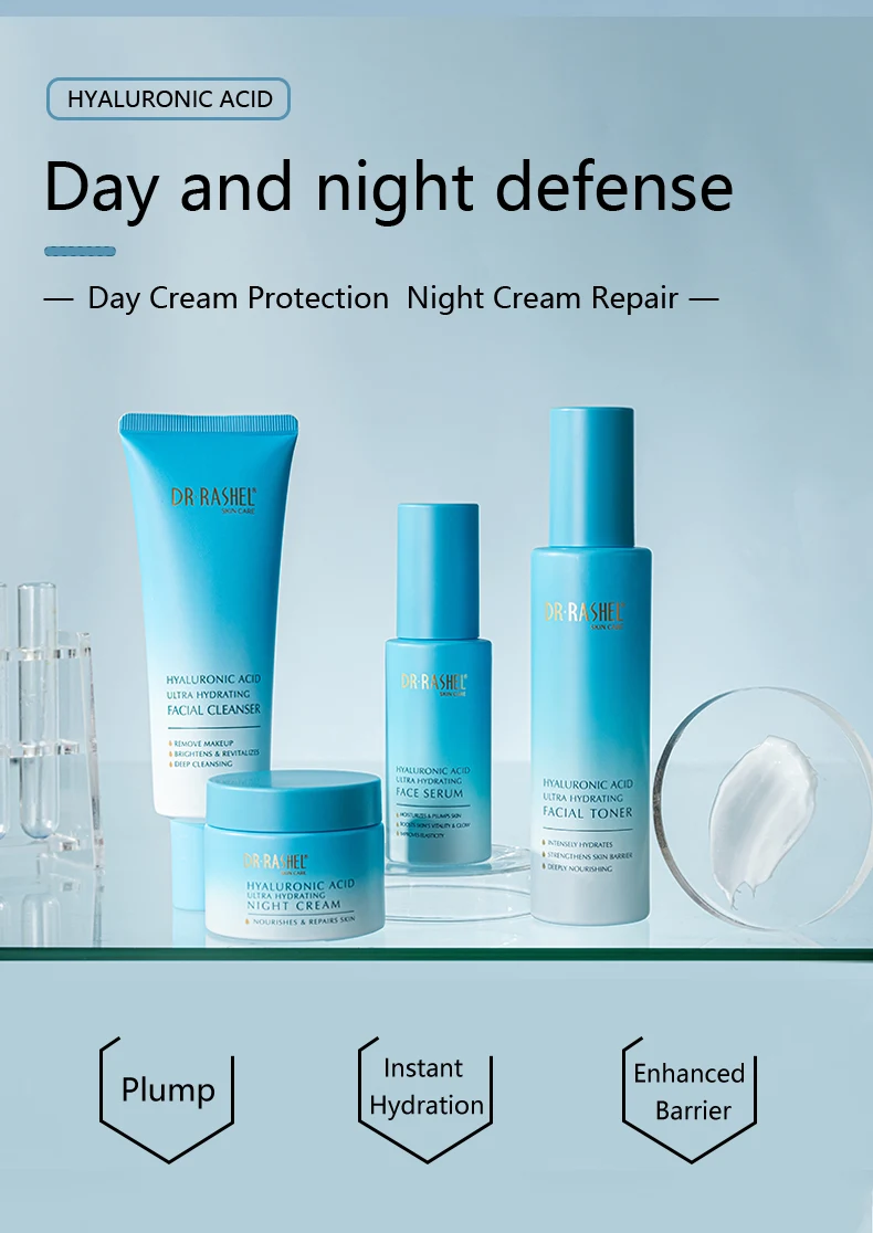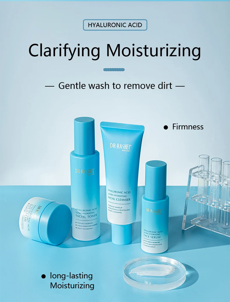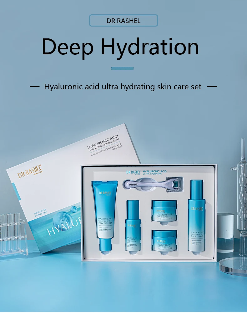 Dr. Rashel Hyaluronic Acid Ultra Hydrating skin care set, including different items in it, Hyaluronic Acid Ultra Hydrating Facial Cleanser,Facial Toner, Face Serum Day Cream and Night cream. It is good for taking out for vacation.