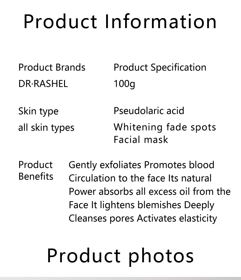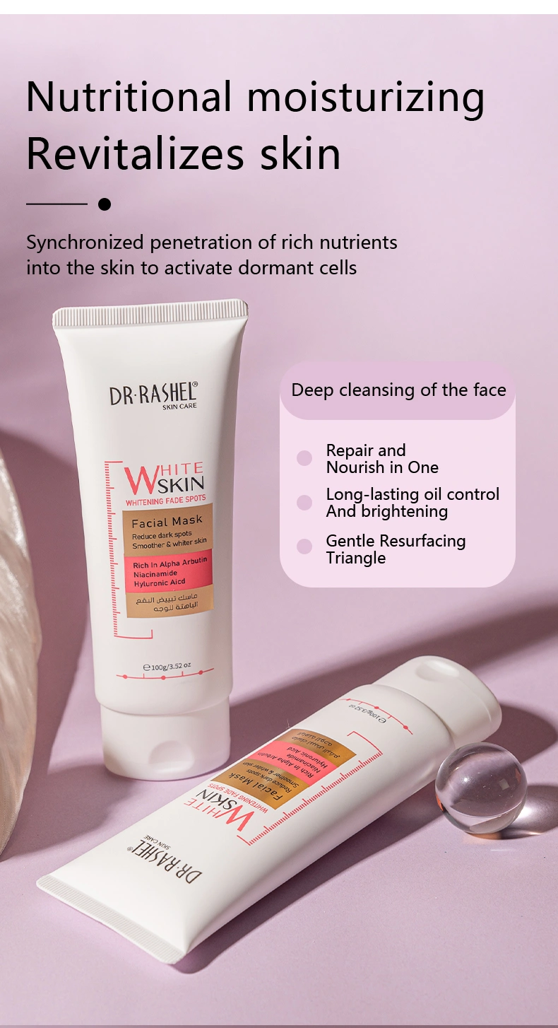 Dr. Rashel Whitening fade spots facial mask provides the best facial moisturization, gently exfoliates the skin to boast blood circulation on the face. Its natural powers soak out all excess oils from the face. It lightens blemishes and deep cleanses your pores,activate elasticity, and brighten from the root. Non-drying, cream texture creates a relaxing home facial experience that feels comfortable on skin.
