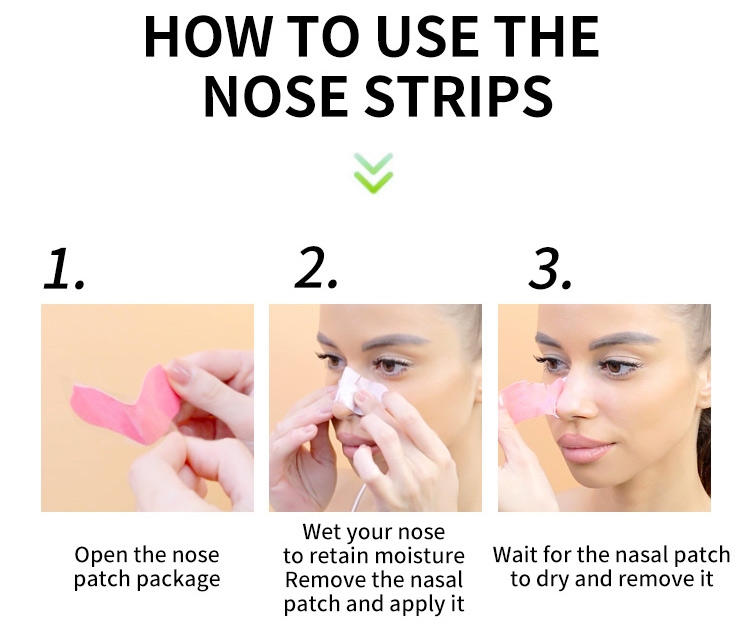Wash your face before you apply your pore strip. Cleanse your face thoroughly with a desired cleanser. Pat your face dry. Open packet and peel strip from plastic liner. Apply the strip and thoroughly wet nose with water or the strip will not stick and may not be effective. Let the strip dry for 5-10 minutes. Slowly and carefully, peel the strip off, starting at edges and pulling towards the center of the nose. Rinse off the residue with water. Follow with moisturizer。