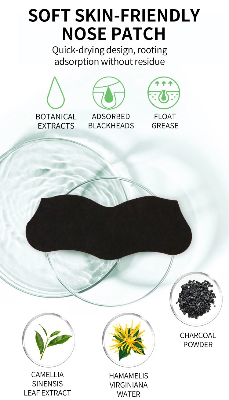 This bamboo charcoal deep cleansing nose strip absorbs impurities from pores, unclogs pores, removes blackheads, improves rough pores, purifies, and soothes skin, leaving nostrils smooth as eggs.