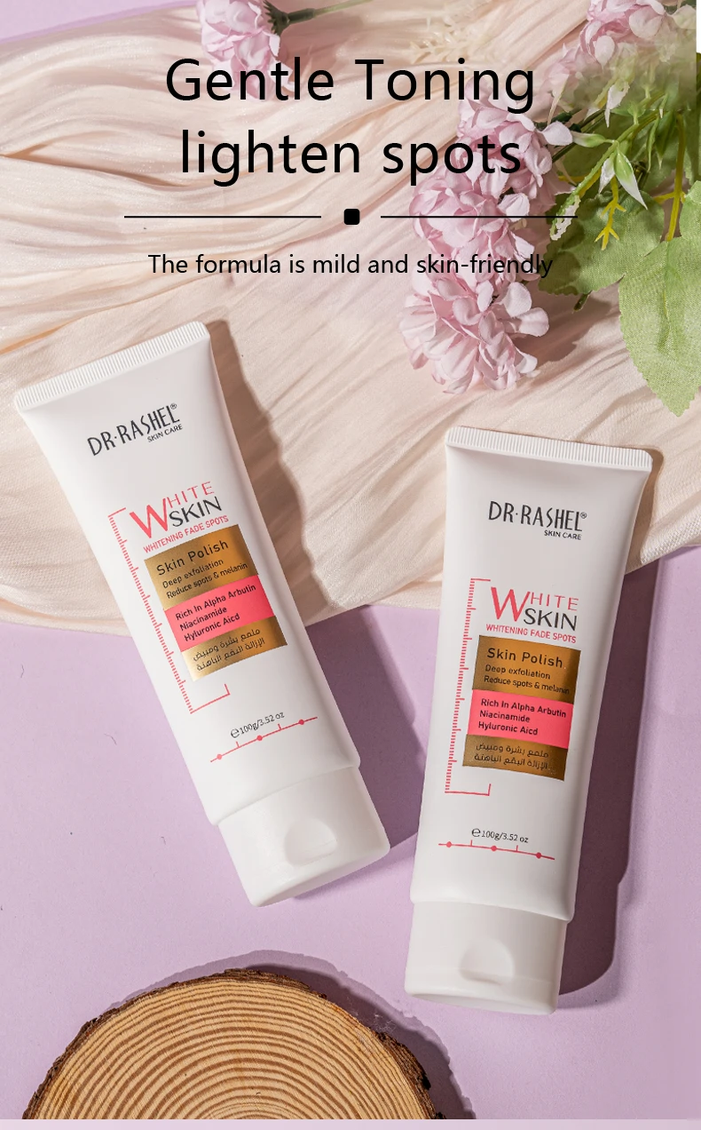 Dr. Rashel Whitening fade spots facial skin polish regenerates the appearance of the skin for a beautifully polished texture and renewed vibrancy. It boasts the self-healing treatment for your skin that should definitely be a regular part of your skincare routine. With immense cleansing and exfoliating properties, our facial skin polisher improves uneven skin tone , fades dark spots and acne spots while tackling hyperpigmentation to achieve a more flawless luminous complexion.