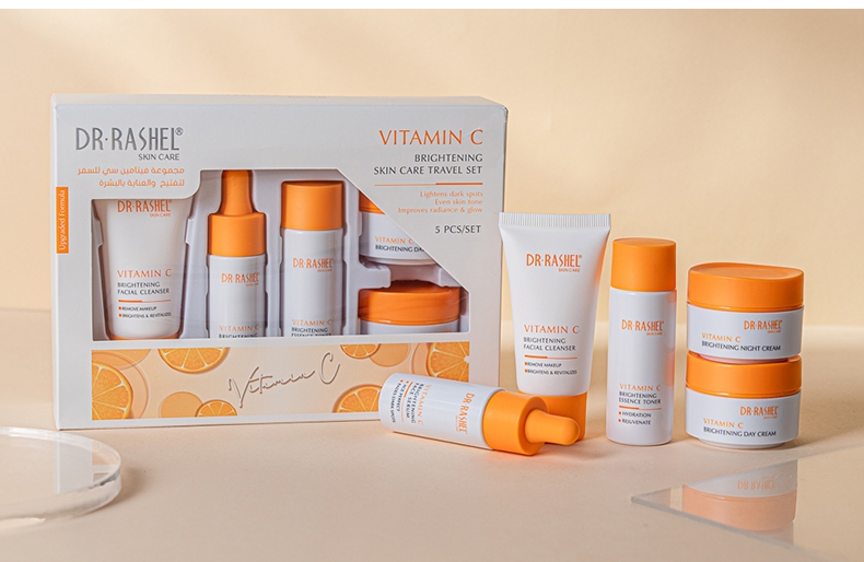 This travel set is designed to be simple and convenient, making it convenient for people to travel. The main function of this kit is to lighten dark spots, even out skin tone, improve radiance and color, and make the skin soft and elastic.