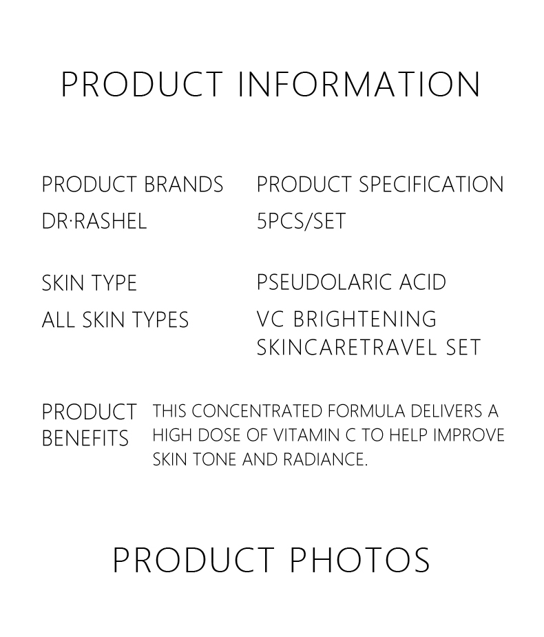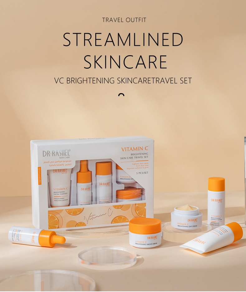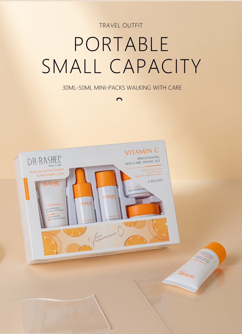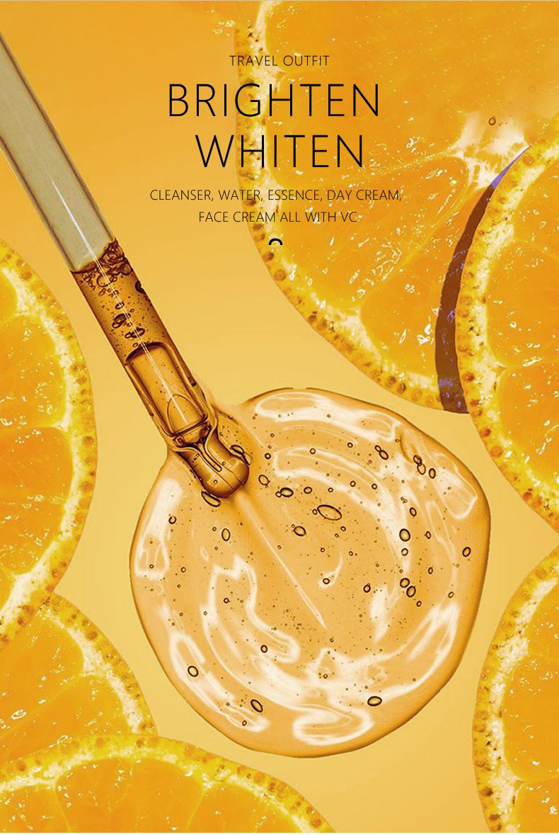 This travel set is designed to be simple and convenient, making it convenient for people to travel. The main function of this kit is to lighten dark spots, even out skin tone, improve radiance and color, and make the skin soft and elastic.