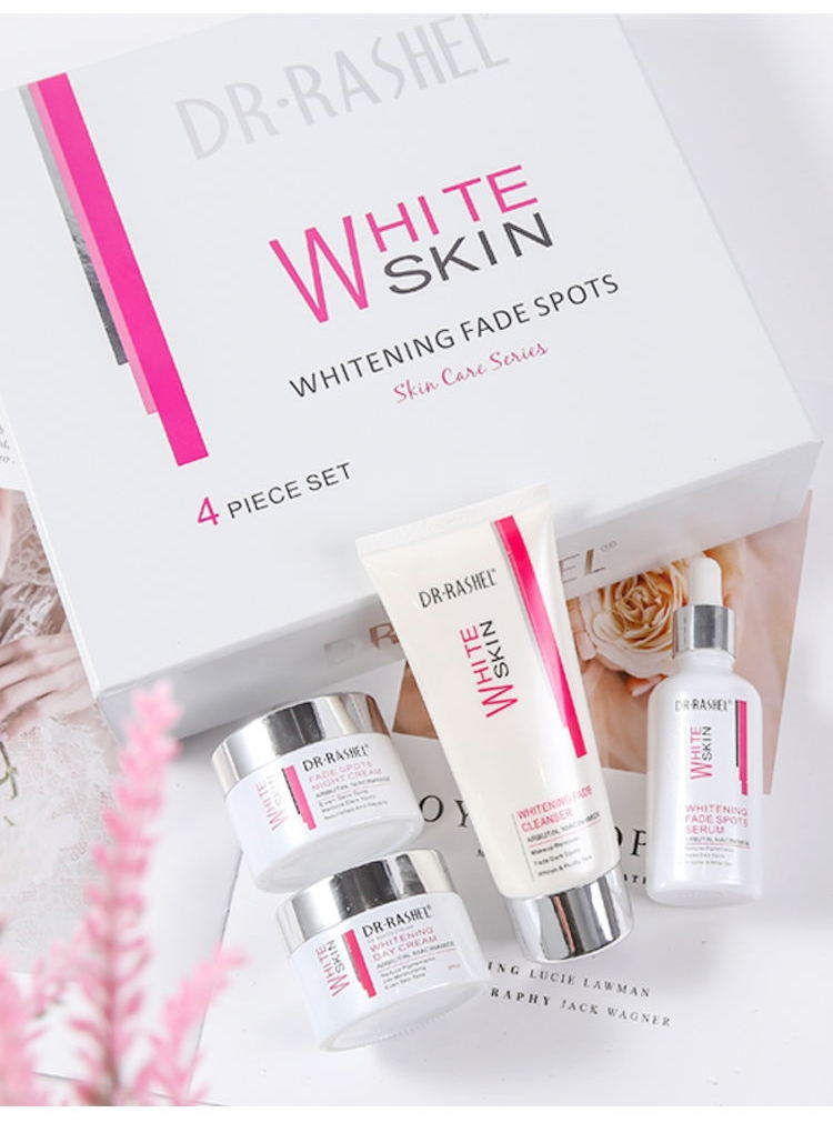 Whitening fade cleanser is a purifying face wash ,The creamy formula removes makeup, oil, dirt and debris from pores to promote healthy skin. Whitening fade spot serum brightens and clarifies skin for increased radiance.Fade spot night cream evens skin tone, reduces dark spots and discoloration for a brighter, more radiant complexion.Whitening Day cream provides instant brightening and a long-lasting, even-toned radiance, leaving skin looking refreshed all day long.In general, this set can achieve a good whitening effect on the skin and is an indispensable combination for people who pursue whitening.