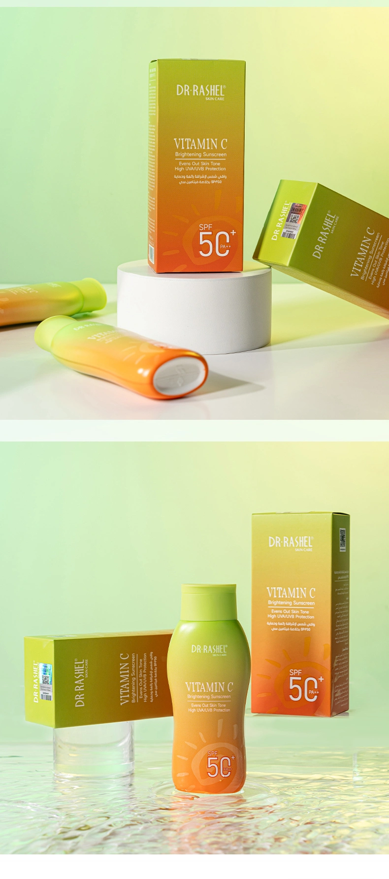 Vitamin c sunscreen helps minimize aging signs and dark spots while protecting the skin from the sun. With a light creamy texture, it is suitable for all skin types and perfect to lend the complexion an even and luminous appearance while shielding the skin from solar radiation. Antioxidants and sunscreen filters provide very high sun protection against both UVA and UVB rays.