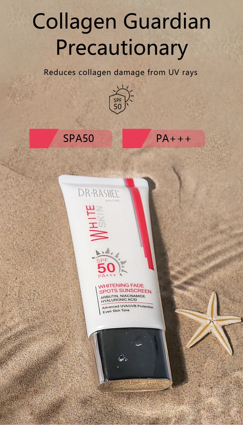 Whitening sunscreen help protect skin from UVA and UVB harmful rays, which induce Premature skin ageing and pigmentation While it helps lighten, moisturize and keep Skin young looking
