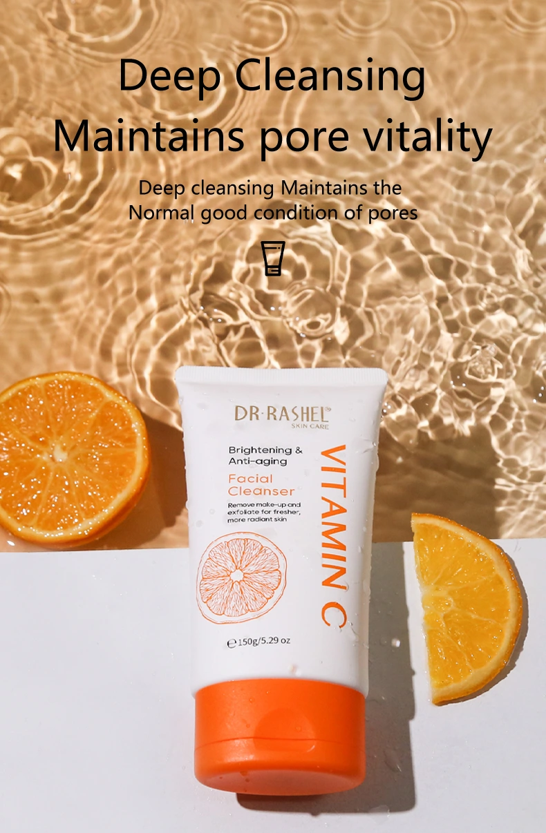 Dr. Rashel Vitamin c brightening & anti-aging facial cleanser refreshes and restores skin’s natural vitality and clarity with powerful Vitamin C. A boost of antioxidants repair and protect from environmental damage and sun exposure. Gently remove impurities to reveal a more youthful and dewy complexion. This cleanser helps cleanse and repair the skin while protecting against future environmental damage.