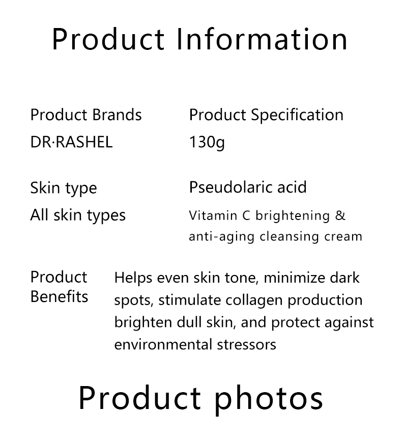 Dr. Rashel Vitamin C brightening & anti-aging facial cleansing cream invigorates the skin. Our deep purifying and moisturizing cleansing cream helps remove environmental pollutants, makeup and dead skin cells to reveal a fresh, glowing appearance. The brightening properties of Vitamin C help to even out your skin tone and reduce the appearance of dark spots, stimulate collagen production, brighten dull skin, and protect against environmental stressors.