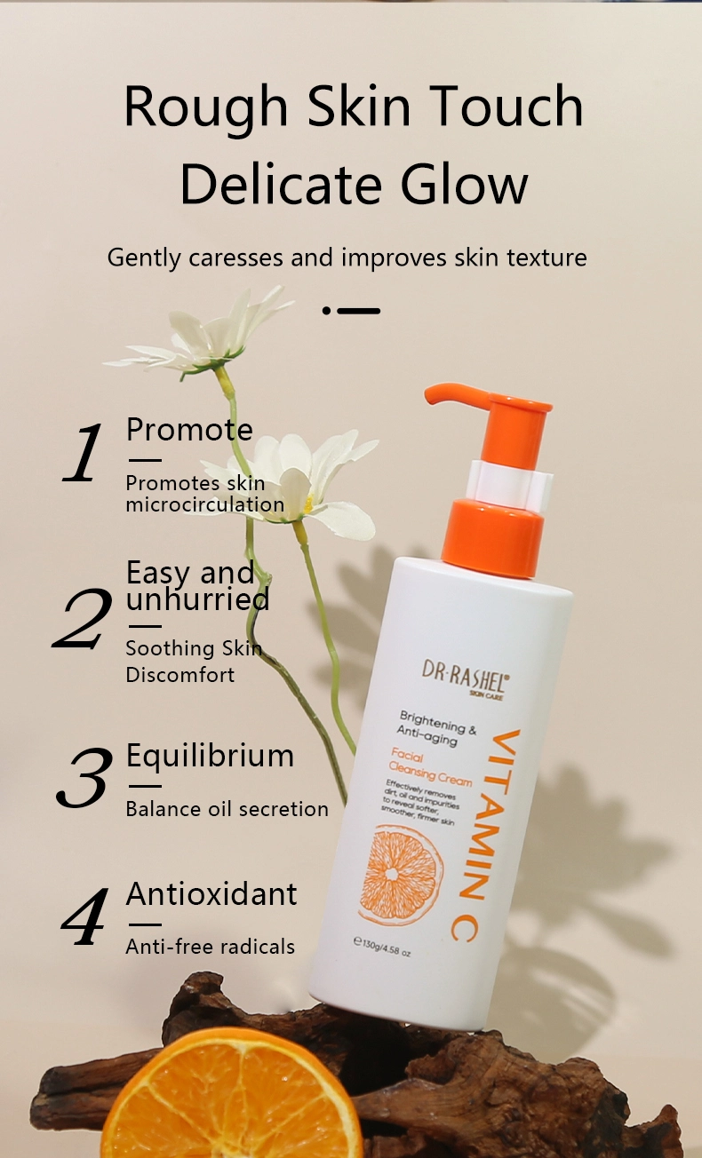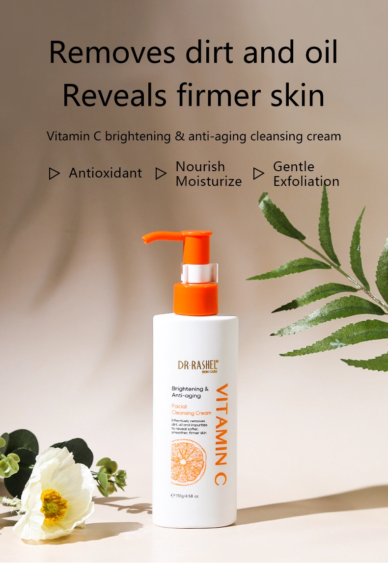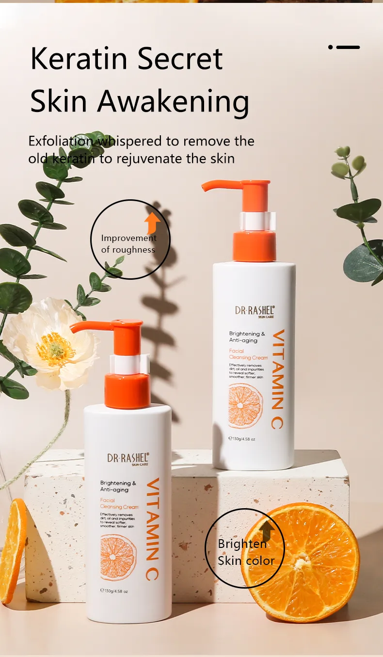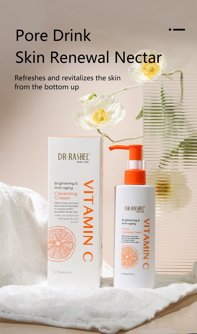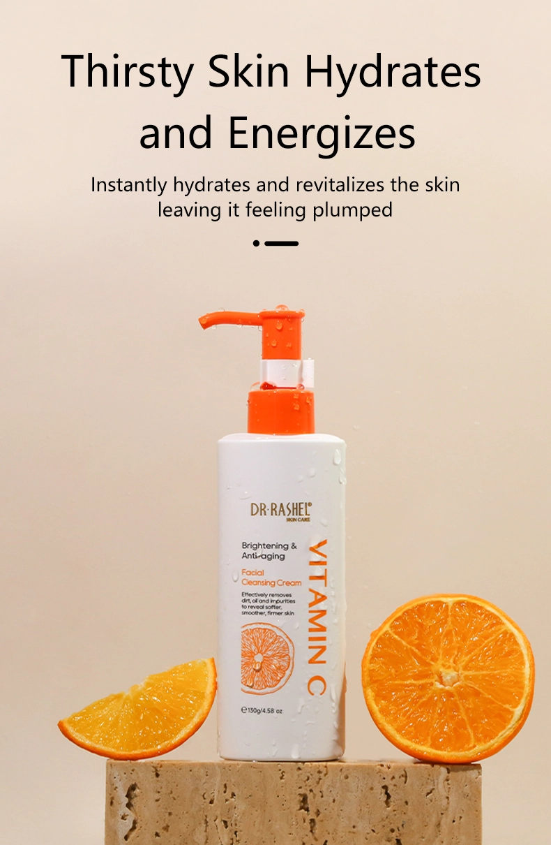Dr. Rashel Vitamin C brightening & anti-aging facial cleansing cream invigorates the skin. Our deep purifying and moisturizing cleansing cream helps remove environmental pollutants, makeup and dead skin cells to reveal a fresh, glowing appearance. The brightening properties of Vitamin C help to even out your skin tone and reduce the appearance of dark spots, stimulate collagen production, brighten dull skin, and protect against environmental stressors.