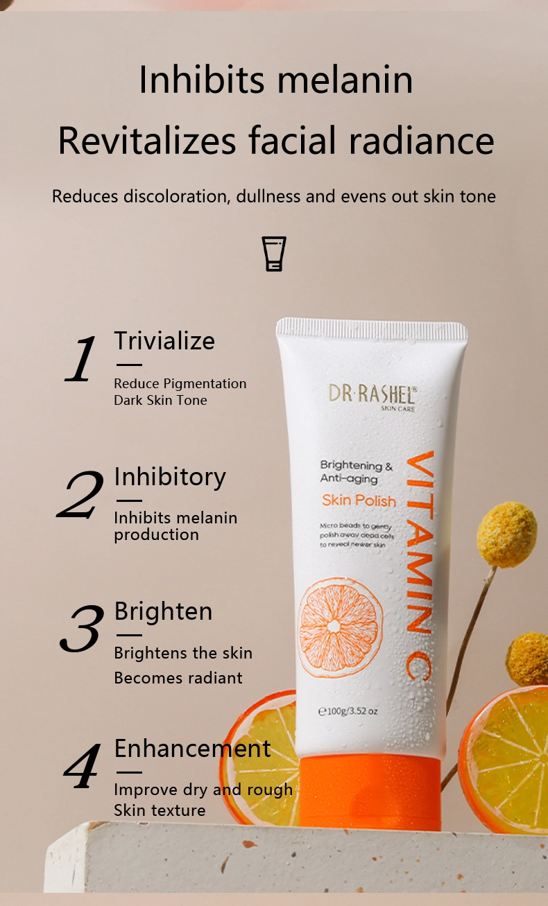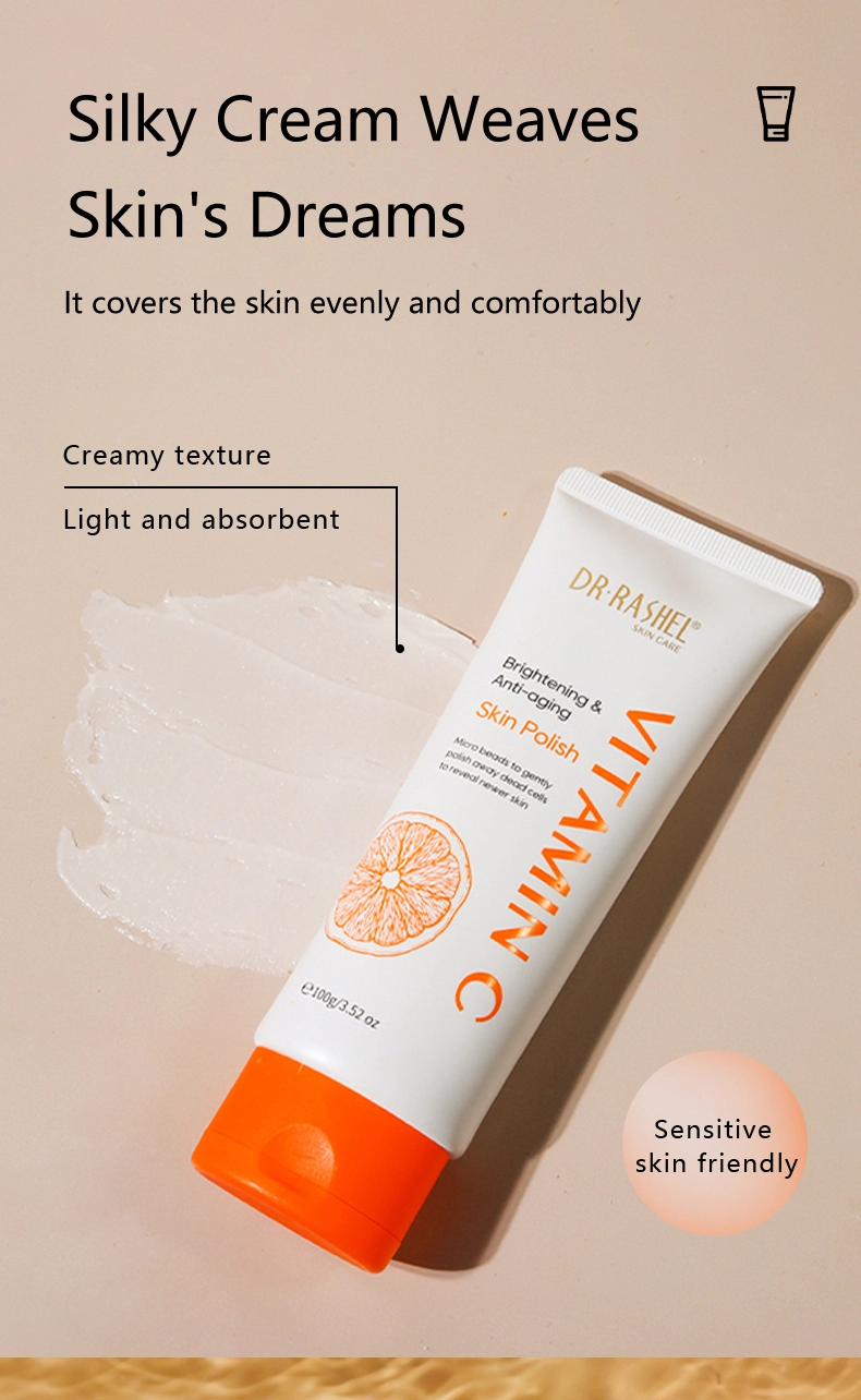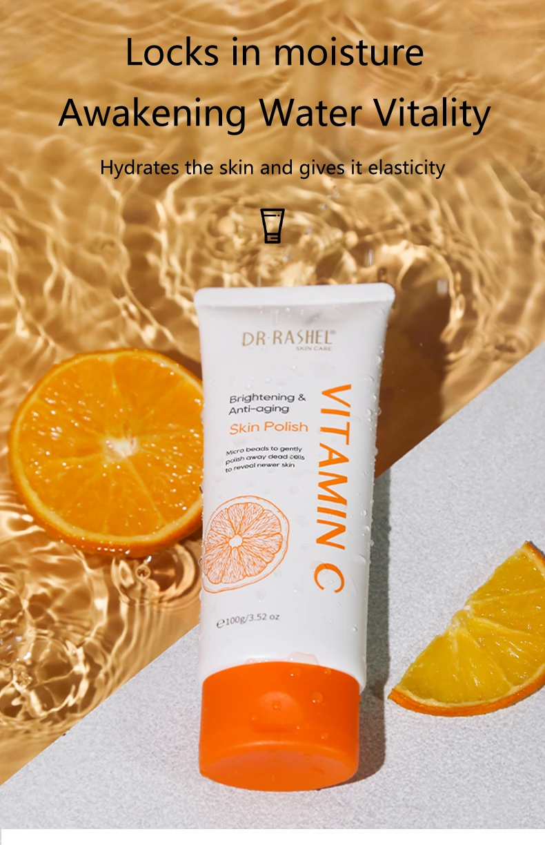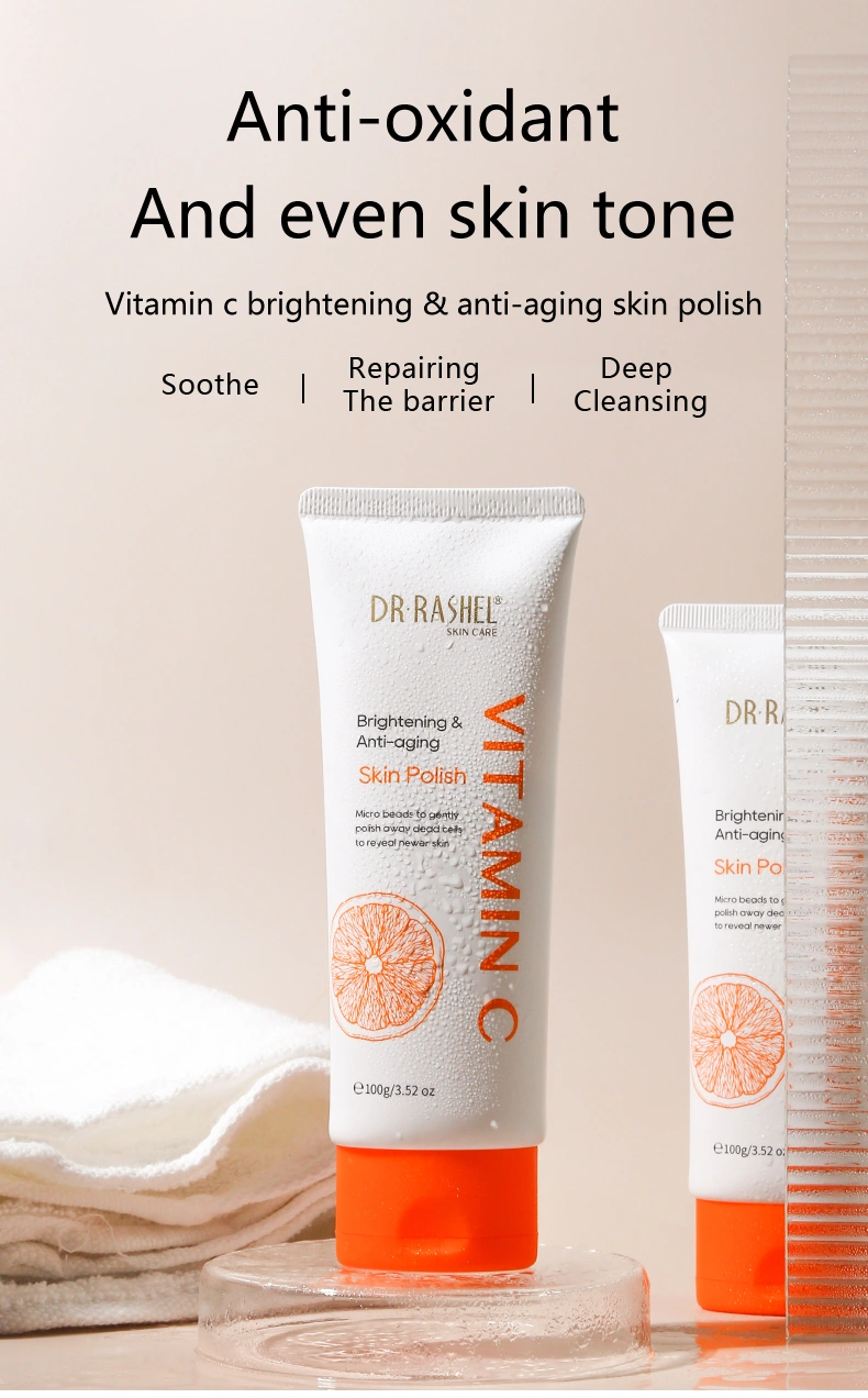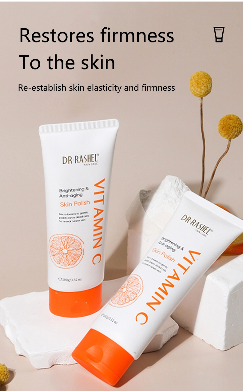 Dr. Rashel Vitamin c brightening & anti-aging skin polish gently sweeps away dead skin cells and debris while infusing skin with essential antioxidants and vitamins to reveal a luminous, smoother and more radiant complexion.Vitamin c extract to help brighten complexion and emollients to combat dryness. With regular use skin polish will refine pores and uncover skin’s youthful and glowing appearance, makes skin soft, supple and more youthful looking.