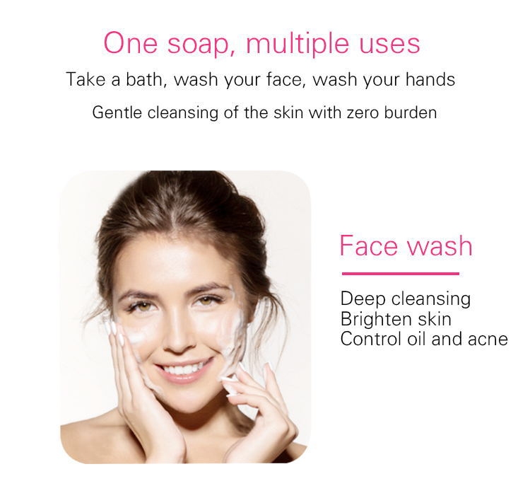 Moisturize the facial skin with warm water,use a foaming net to beat the soap into a delicate and rich foam. Apply the foam on the face,gently massage clean the skin with a circular motion. Rinse with cool water and pat dry. It can also be used as hand cleansing and bath soap to clense the skin.