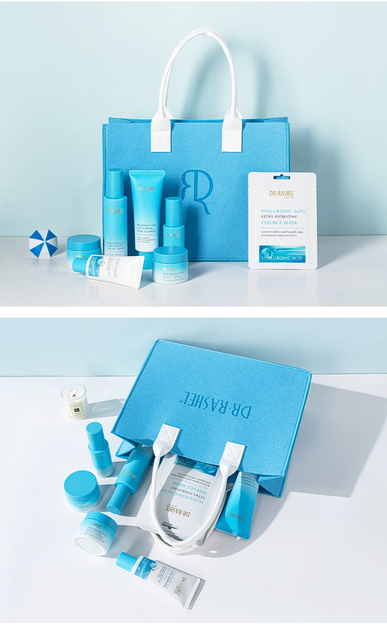 A: 该套装针对干燥、脱水、暗沉和失去弹性的问题,通过透明质酸提供深层、持久的水合作用,帮助肌肤丰盈,抚平细纹,恢复容光焕发的肤色。