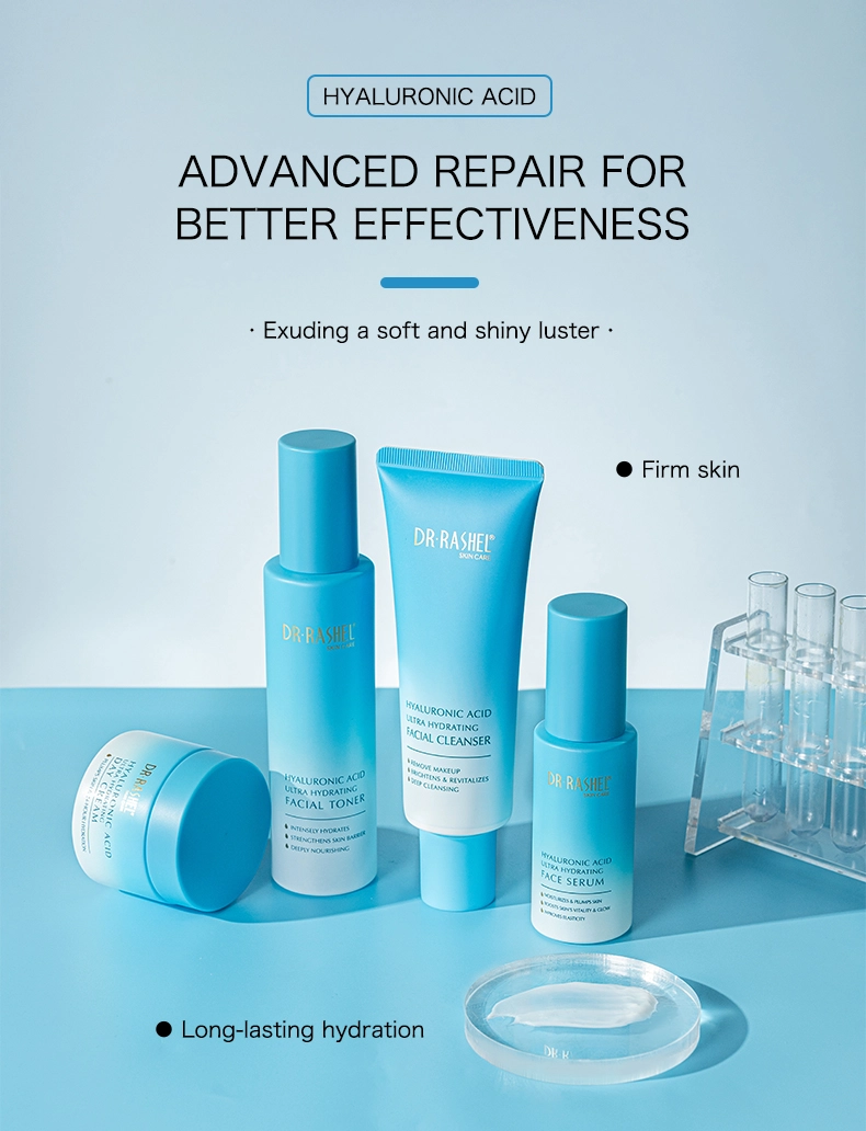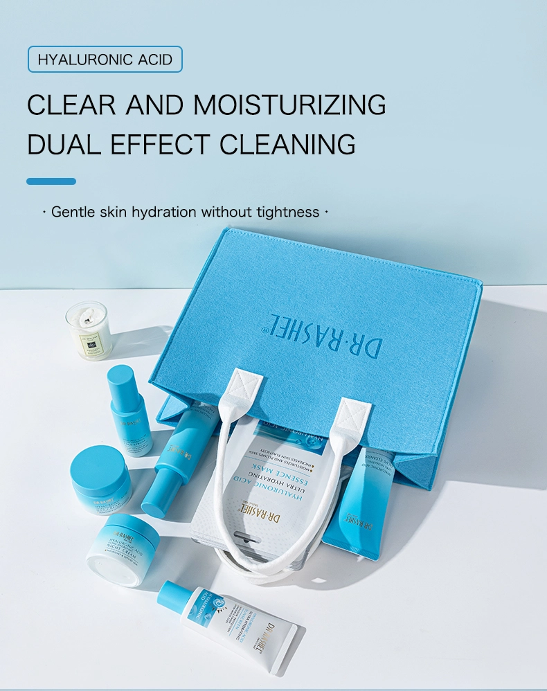 A: 该套装针对干燥、脱水、暗沉和失去弹性的问题,通过透明质酸提供深层、持久的水合作用,帮助肌肤丰盈,抚平细纹,恢复容光焕发的肤色。