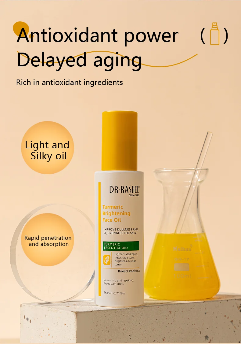 A. It’s a lightweight face oil designed to nourish and brighten dull or dry skin, powered by turmeric extract and other oils to help improve glow, hydration, and smoothness.